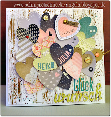 An diesem kalten Sonntag habe ich eine Hochzeitskarte für eine Freundin gemacht. Und was würde bei einer Hochzeit besser passen als gaaanz viele Herzen.