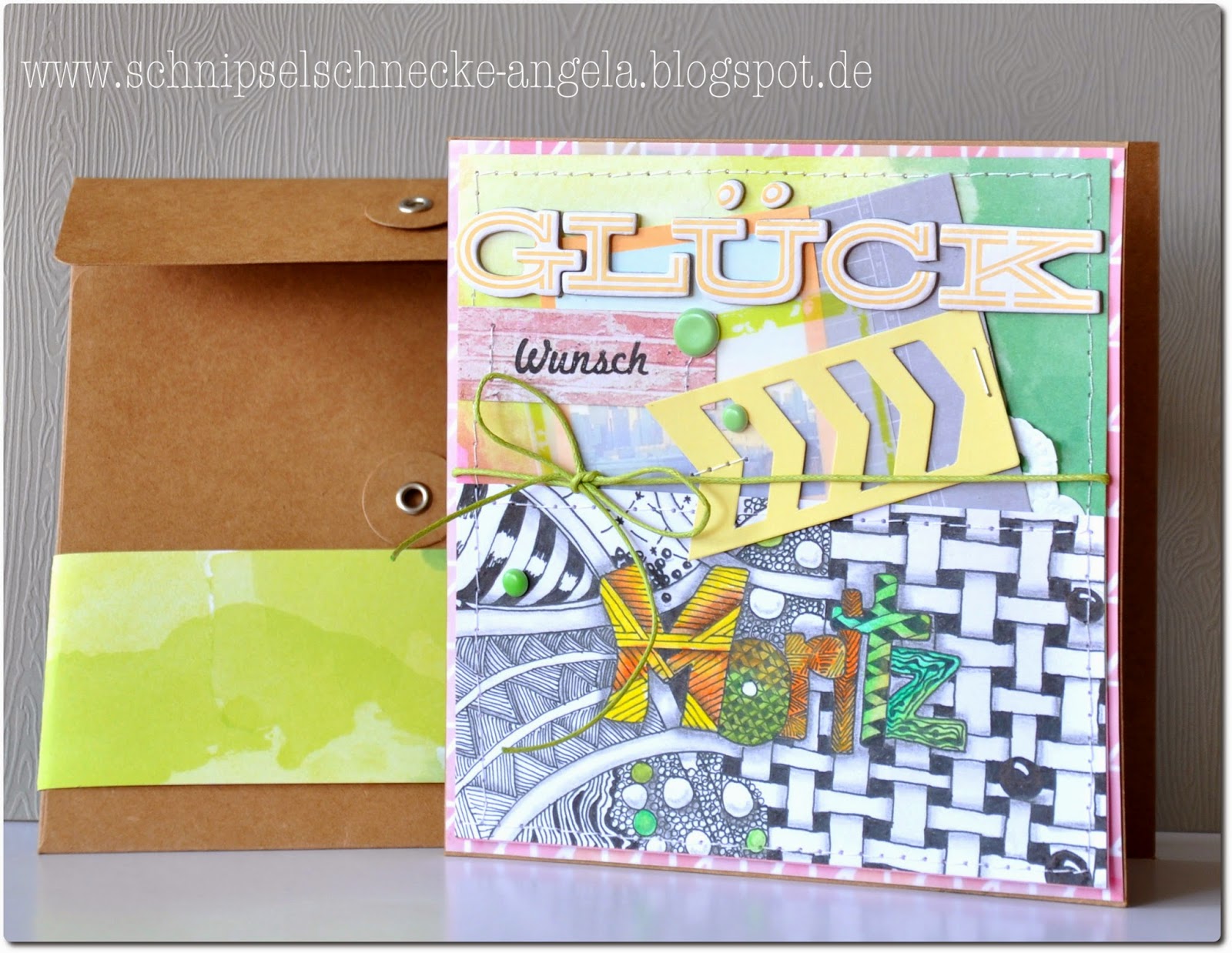 I tried some drawing or doodling on the upper half of my card. I just started with this technique and it’s really fun and relaxing. The card is for a teenage boy and, I think, this fits really well for him.