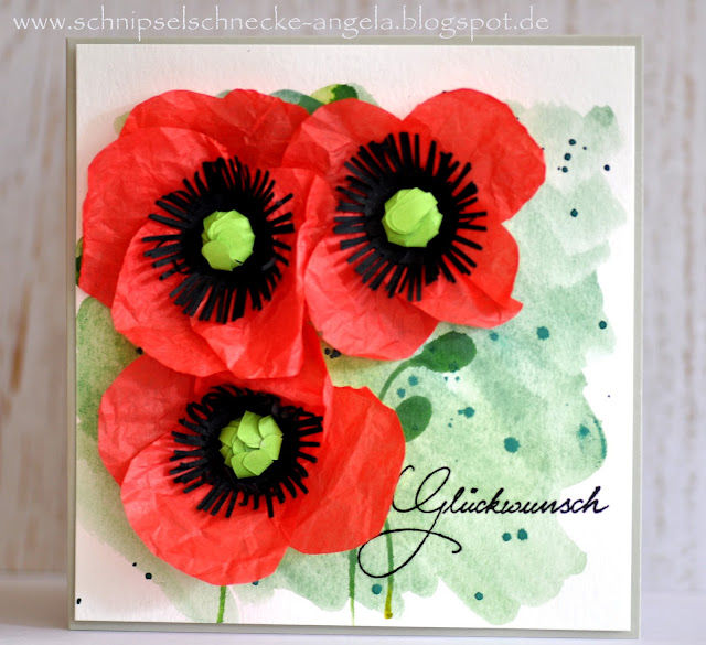 Oh ich liebe Mohnblumen und jetzt blühen sie gerade so schön an jeder Ecke. Ein toller Farbklecks. Genauso intensiv ist nun auch meine Karte geworden. Mohnblumen wollte ich schon immer mal basteln, da kommt die Sommerfrische Kartenchallenge von Danipeuss ja wie gerufen. Einen schlichten Aqarell Hintergrund für die Blumen und schon ist die Karte fertig. Die Aquarell Farben von Loew-Cornell sind übrigens von hier.