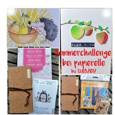 Leider fiel ja die diesjährige Kirschernte nicht so doll aus, aber schön, das Du sie auf Deine Karte gebracht hast. Sommerlich frisch wirkt Deine Karte und ich sage Danke, das Du sie bei meiner Challenge verlinkt hast. Drücke auch Dir die Daumen!!