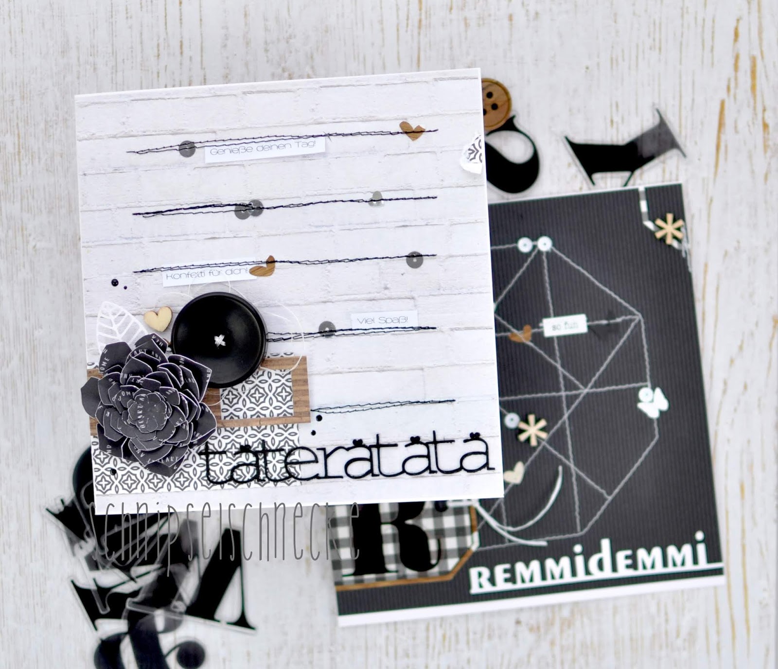 Und da ich momentan dem schwarz/weiß Trip verfallen bin, gibts die zwei natürlich in dieser Farbkombi. Ok mit ein bisschen Holzoptik aber ohne geht ja bei mir nicht. 🙂