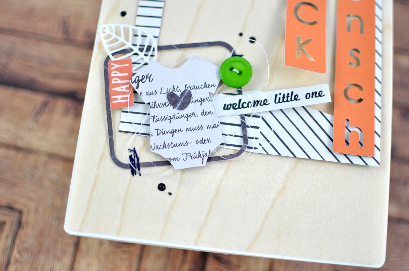 Als Hintergrund habe ich mein schönes Echtholzpapier verwendet. Nach ein paar Bügelrunden hatte ich es gebändigt. Übrigens sind unsere Lampenschrime bei uns im Treppenhaus auch mit diesem Papier gemacht. Das nur so am Rande.
