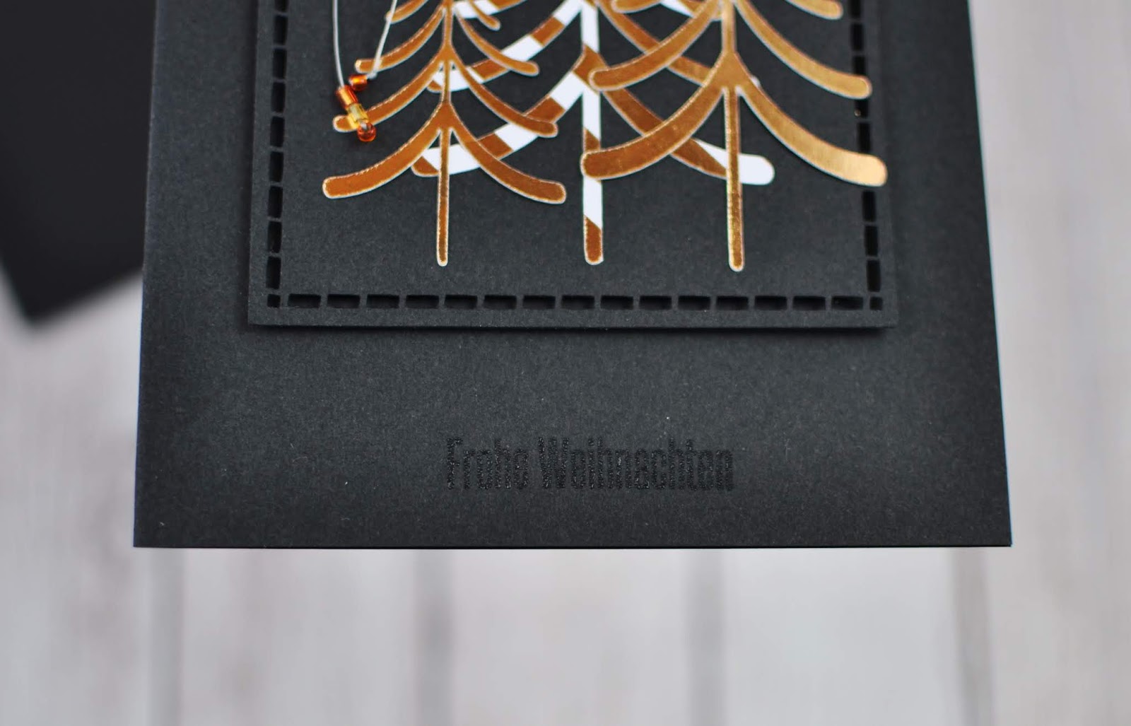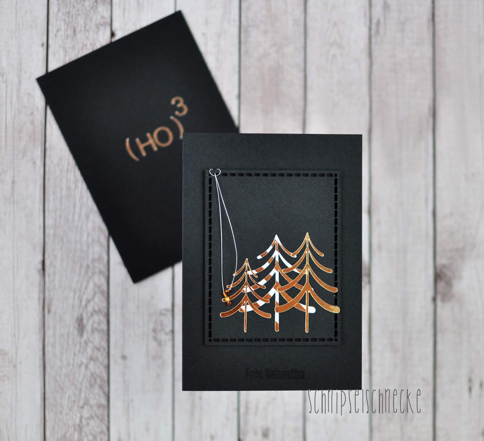 Ich mache ja sonst nie schwarze Karten und auch meist nicht so simple. Aber das Goldpapier aus der First Noel Kollektion von Kaiser Craft leuchtet soo schön auf dem schwarzen Hintergrund.