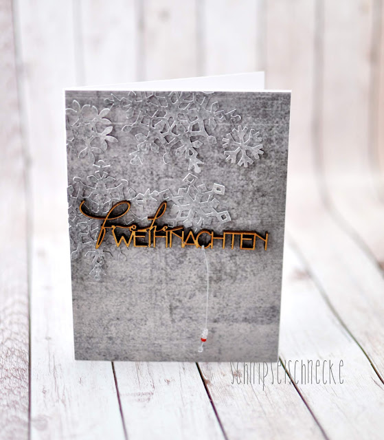 Wenn schon keine Schneeflocken draußen dann wenigstens auf der Karte. Beton und Holz ist dafür einfach eine super Mischung. Hier für euren Start in die Woche von mir noch ein Kärtchen!