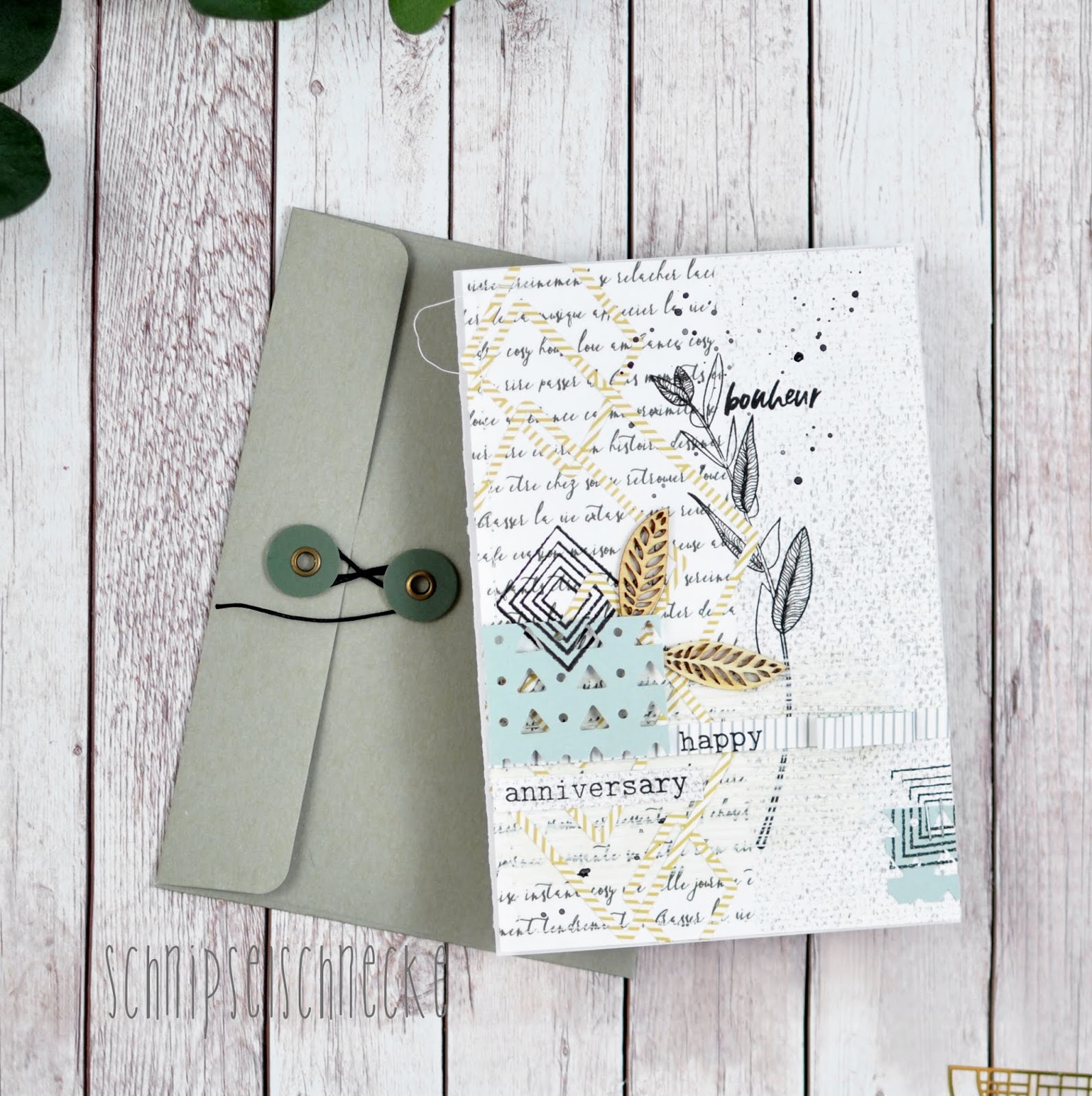 Avec les beaux papiers de Béatrice, j’ai une carte d’anniversaire pour vous aujourd’hui. Assez simple et neutre. Il y a en fait des gens qui n’aiment pas ça si coloré. Je ne comprends pas du tout. 🙂 Sur le tampons j’ai peint en plus les feuilles, donc ça devient plus intéressant. Les tampons sont parfaits pour toutes sortes de cartes, universellement utilisables.