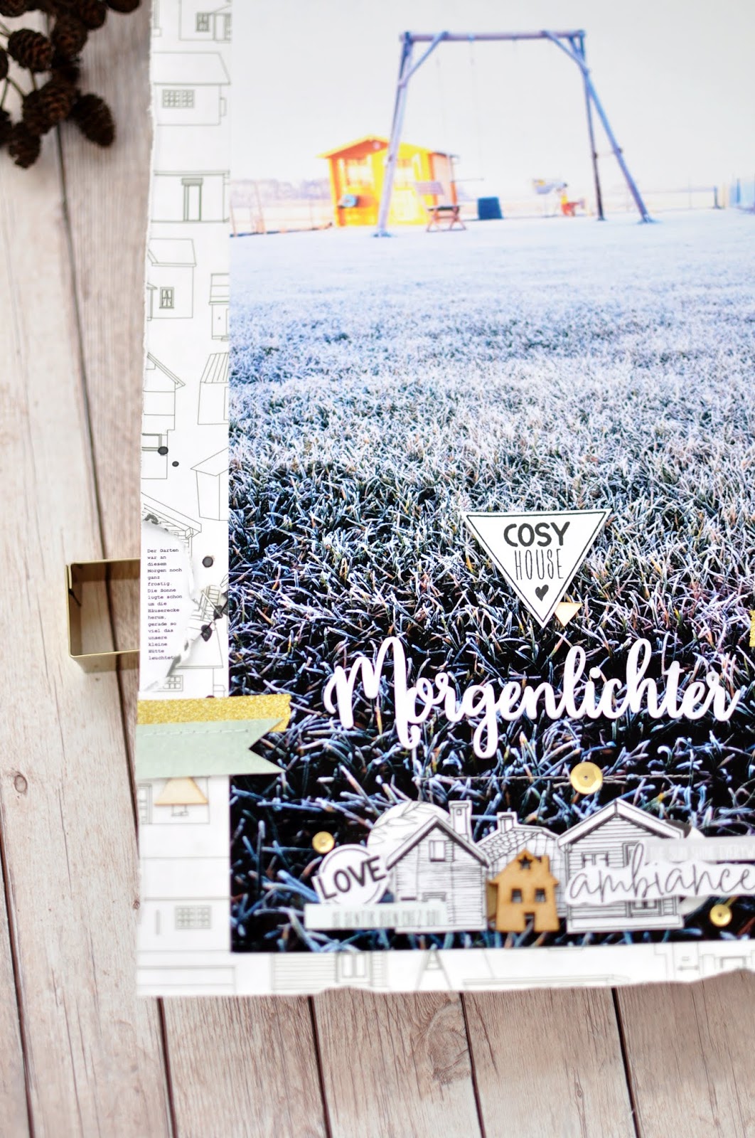 Die Kollektion „Cosy Home“ von Béa hat mit den kleinen süßen Häuschen perfekt dazu gepasst. Das Journaling ist dazu ist mini mini mini klein aber ich fand das irgendwie witzig so ganz am Rand versteckt.