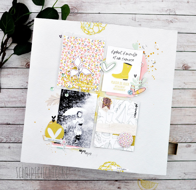 Aujourd’hui, j’ai un layout de pluie pour vous. Bien qu’il fasse beau dehors au printemps. Mais la photo était si bonne pour la collection „Apres la pluie“ de Béa. Ce n’est pas toujours le soleil, n’est-ce pas ?