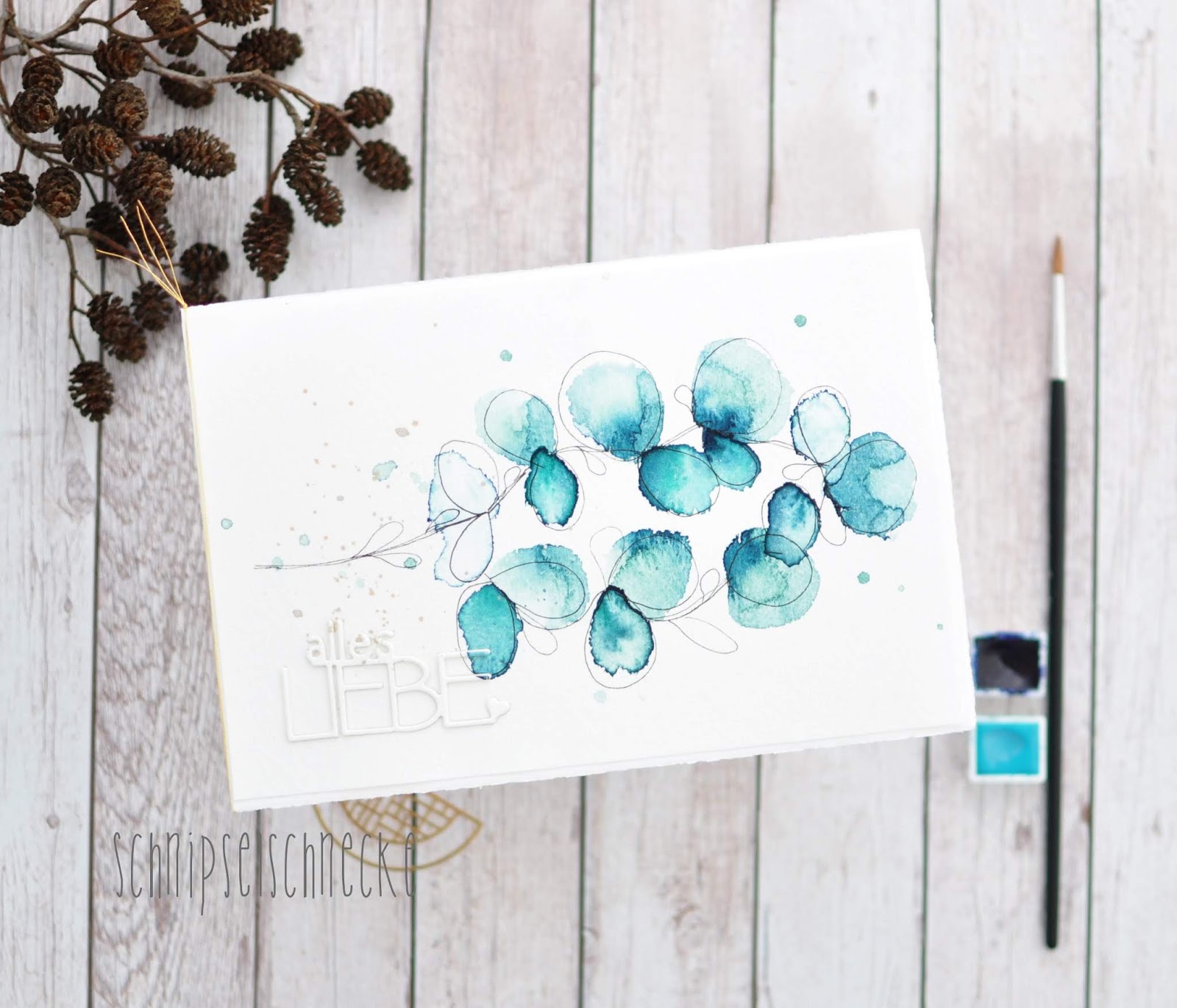 Heute mal ein schnelles Kärtchen, wenn man von dem Trocknen der Aquarellfarbe mal absieht. Für die ganz Schnellen unter uns geht natürlich auch der Fön. 🙂 Quickie Kärtchen