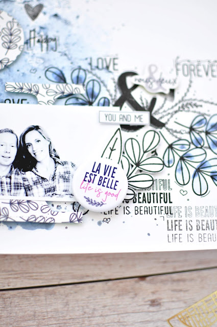 Cette mise en page est un merci à mon mari avec qui j’ai été ensemble depuis 8 ans. A côté des nombreuses photos des nos enfants, je ne doit pas lui oublié. 😉 Les timbres que j’ai utilisés sont de la nouvelle collection „Oh lovely Day“ de Béatrice. Le papier est bien sûr aussi de là.