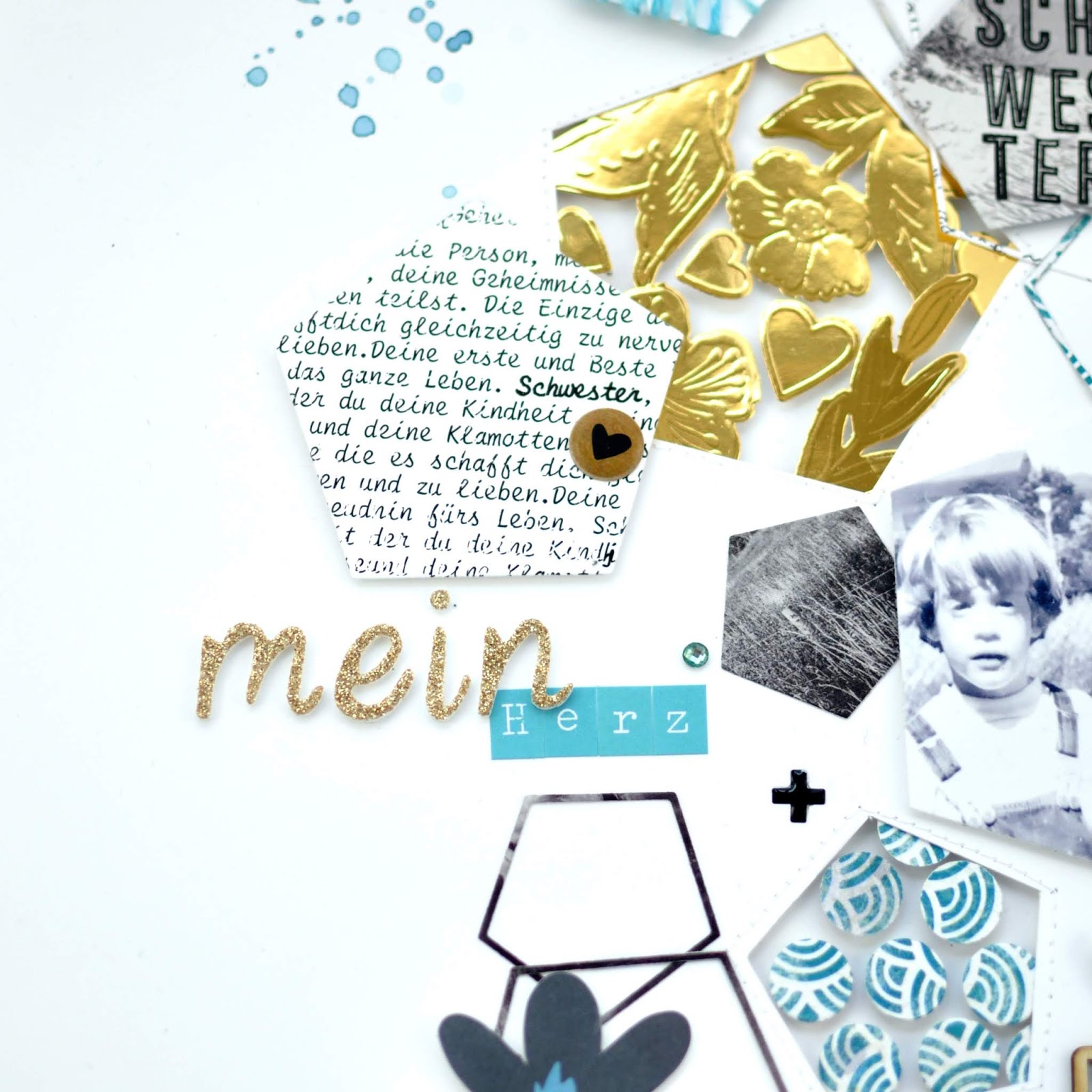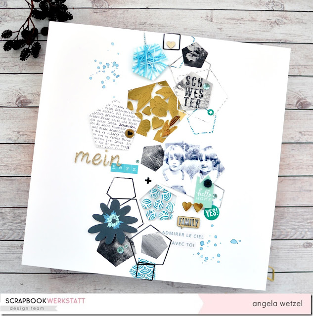 Das Foto hat jetzt über 30 Jahre gewartet bis es zum Einsatz gekommen ist. Und ihr dürft raten wer ich bin und wer meine Schwester….. Neeee, das krieg ich ja manchmal selber kaum hin auf den Babybildern von uns. Ich hatte irgendwie Lust mal auf ein Schwesternlayout. Dazu verwendet habe ich so einiges, die Sunny Days Kollektion von Maggie Holmes steckt drin und die Color Kaleidoscope Kollektion von Vicki Boutin spielt auch noch mit. Bekommt ihr alles bei der Scrapbook-Werkstatt.