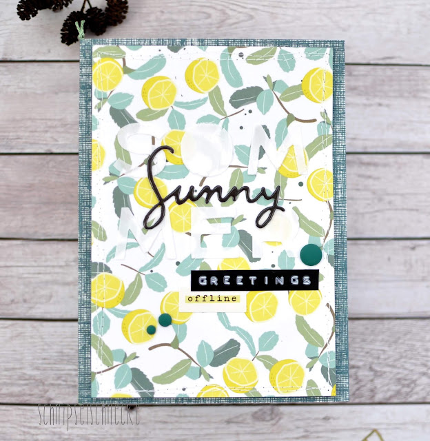 Cette petite carte d’été est déjà parvenue à son propriétaire, mais bien sûr, je ne voulais pas vous la cacher. Je transpire légèrement et déjà à la vue de ces citrons je me sens un peu plus frais 🙂 J’adore ce papier. Malheureusement, il n’y a plus rien. Chaque morceau de papier est bricolé !