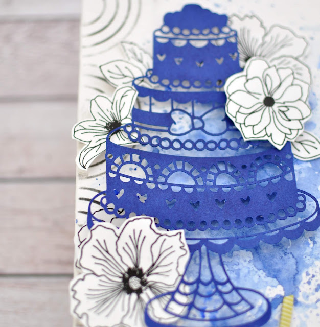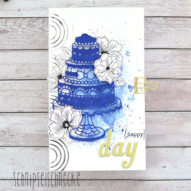Neue Blumenstempel von Studio Forty musste ich auch gleich ausprobieren. Und wenn ich die Torte schon in Blau habe, mache ich bestimmt gleich noch ein paar mehr, vielleicht mal in gelb oder grün! Aber das mache ich erst wenn sich die Temperatur in meinem Bastelzimmer deutlich gesenkt hat.:)