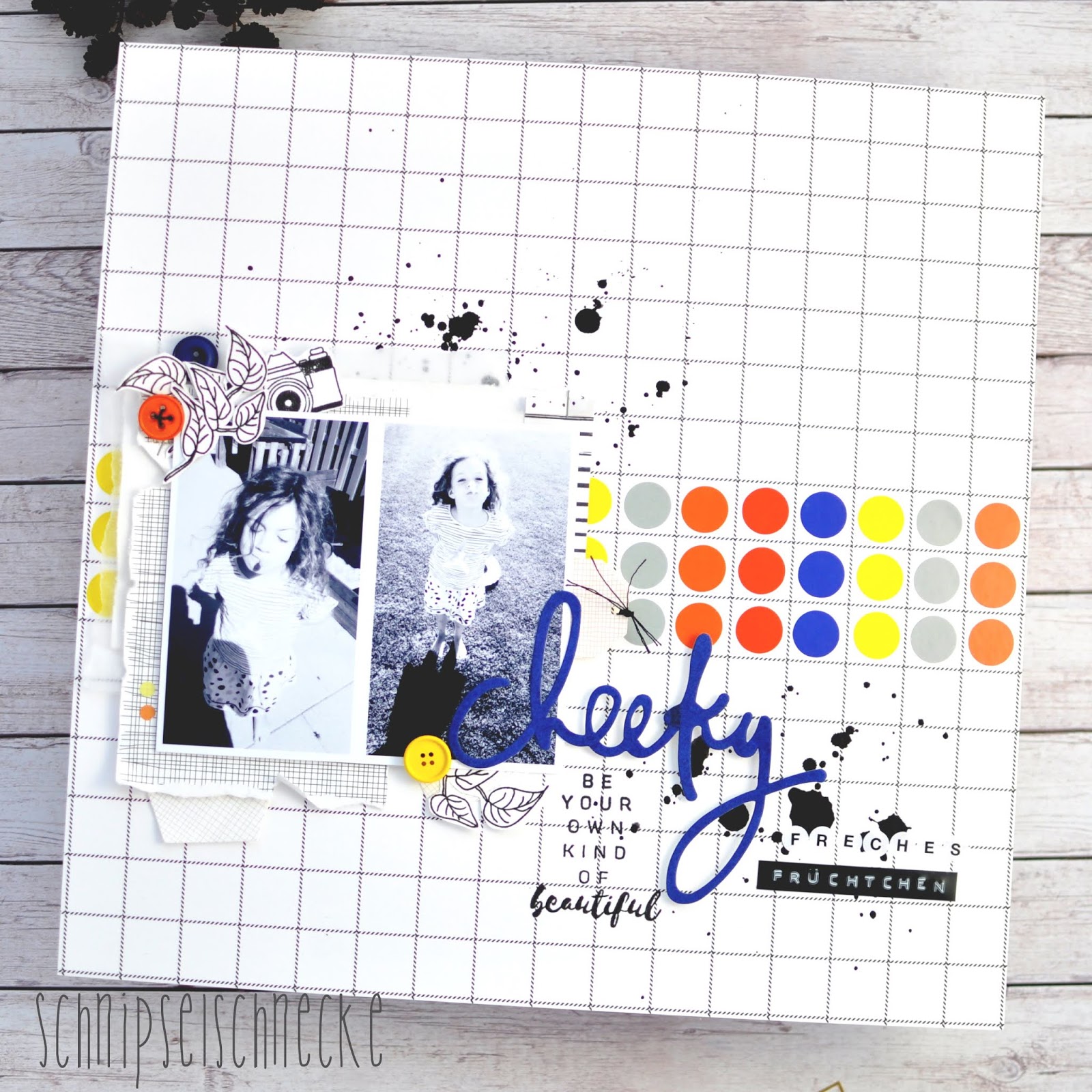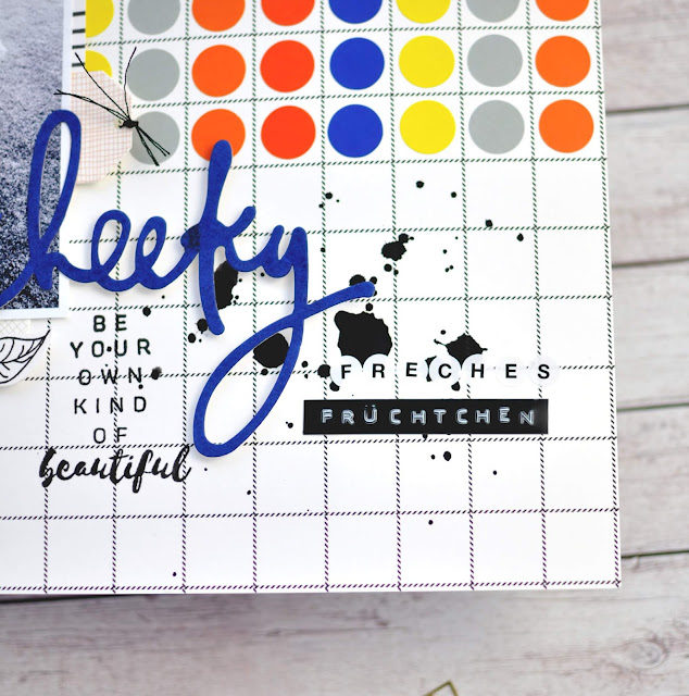 [Werbung, wegen Verlinkung] Na das sind mal Farben, oder? Ich hab hier mal tief in meine Punkte-Trickkiste gegriffen. Die Klebepunkte sind von Paper Poetry und sind eigentlich für Planner/Kalender gedacht. Aber die Farben fand ich zusammen so hübsch, die mussten einfach auf ein Layout. Blau war bis zuletzt nicht so meine Komfortzone…aber mittlerweile, muss ich sagen hab ich Blau doch ganz gerne.