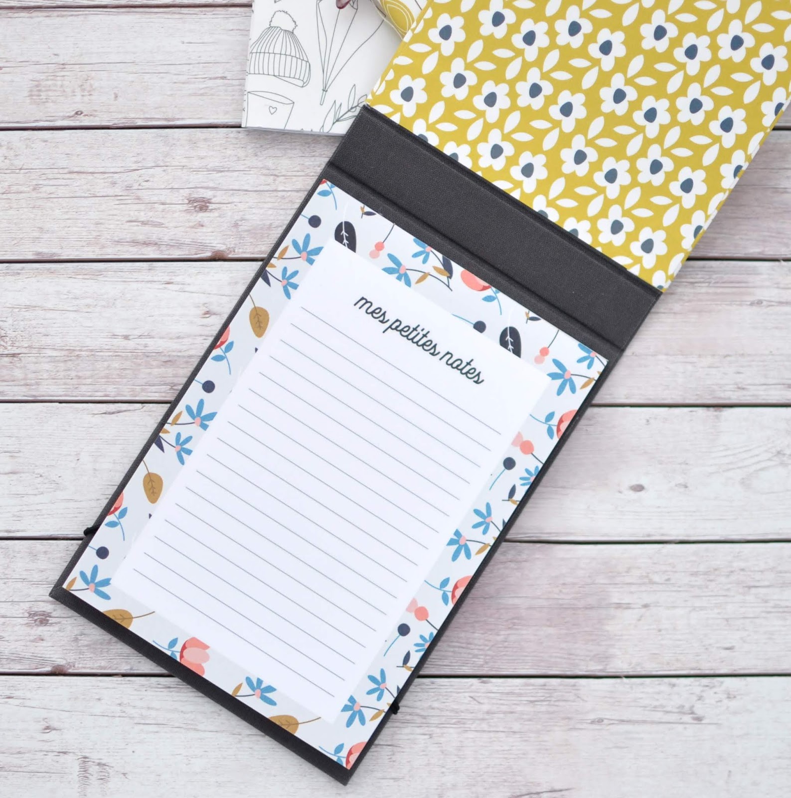 Bien que j’aie toujours mon téléphone portable avec moi, je suis plutôt une personne analogique. J’aime écrire et gribouiller. Je n’ai jamais assez de carnets, alors j’ai fait trois carnets des papiers des collections de Béa. Avant l’arrivée des prochains beaux papiers en septembre, je peux prendre les restes et les traiter.