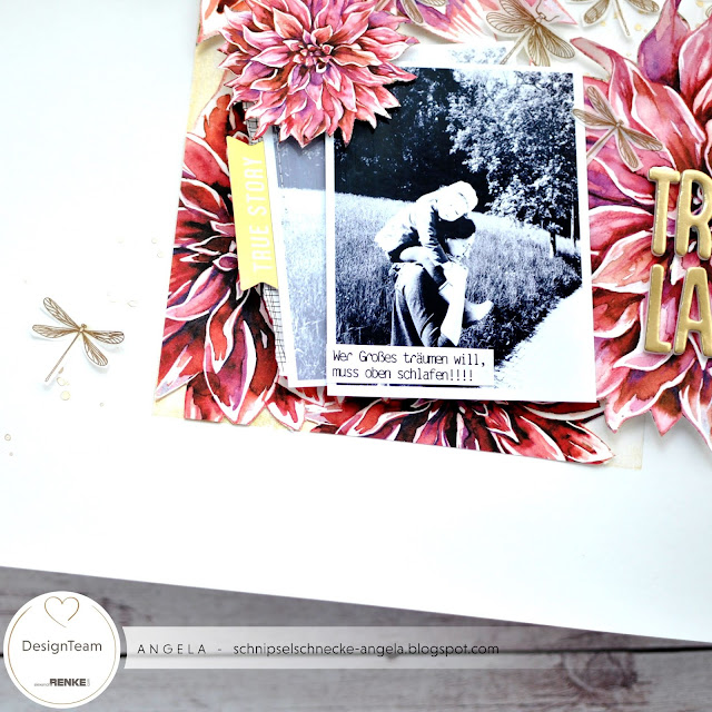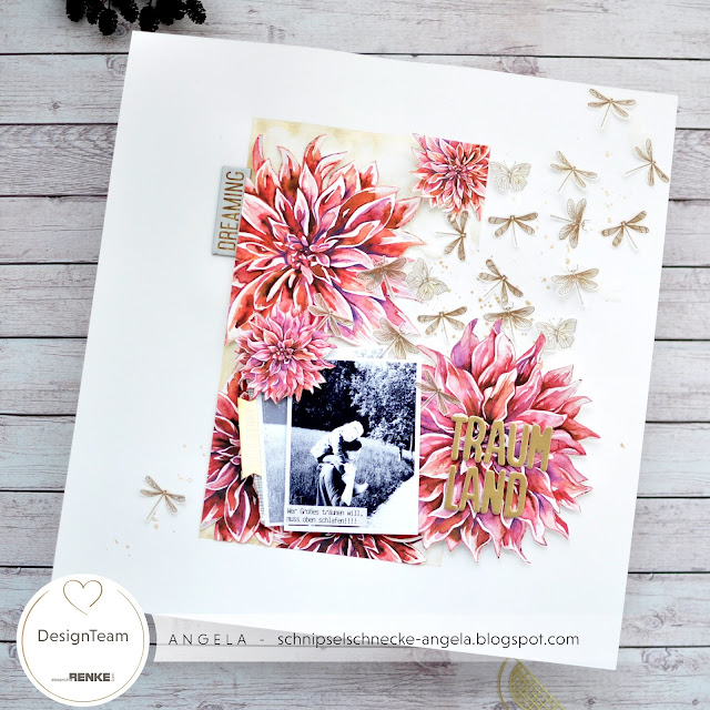 Für euch habe ich heute ein flatteriges Layout, mit Washi-Schmetterlingen und ganz viel Gold.