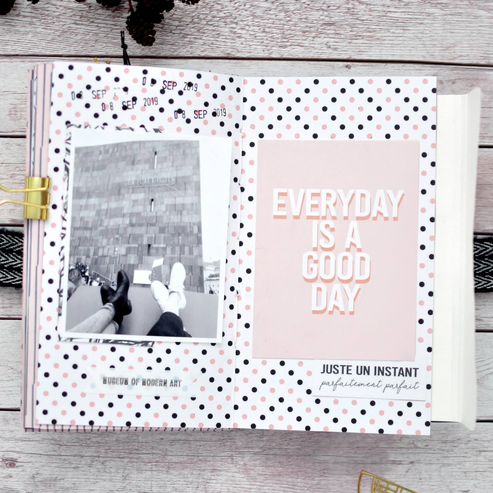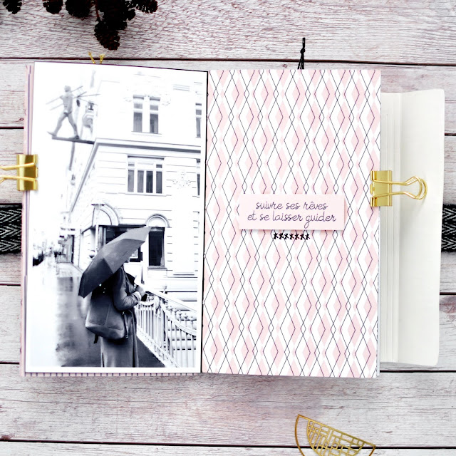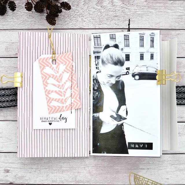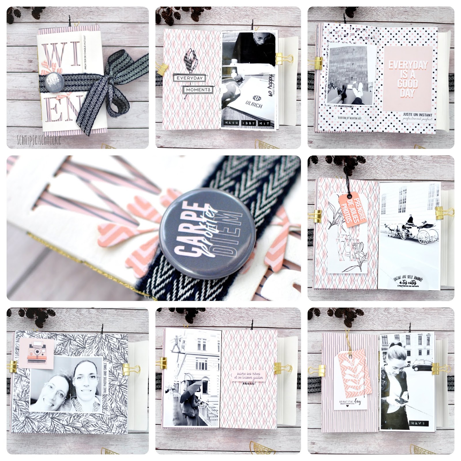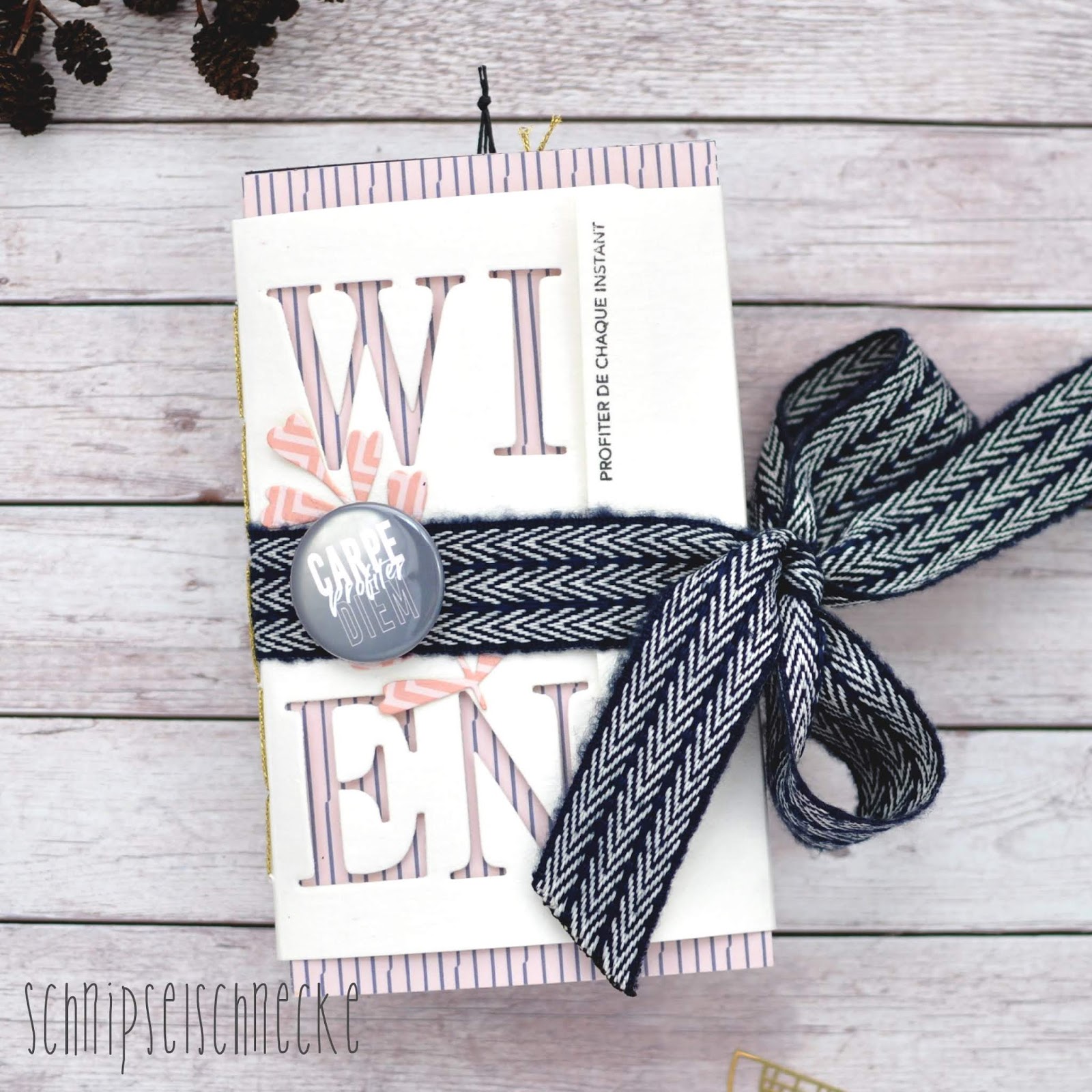 Dazu habe ich die „So Sweet Collection“ von Béa in DinA4 benutzt und das schöne Band was ich in Wien gekauft habe gleich als Verschluß verwerkelt.