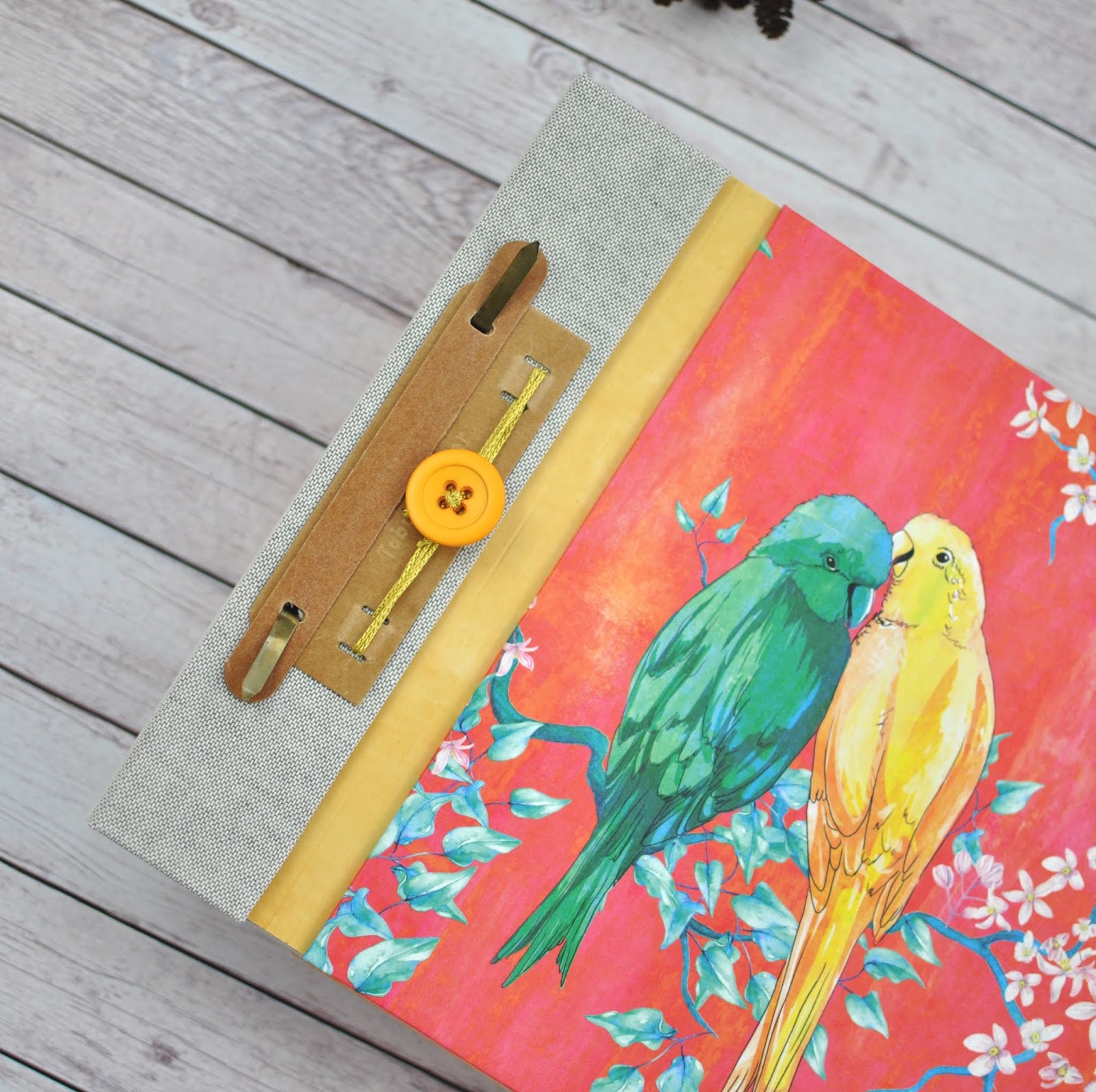 Irgendwo habe ich gelesen das Wellensittiche monogam sind. Warum also nicht ein paar monogame Tiere auf ein Hochzeits-Gästealbum, das Ganze etwas japanisch angehaucht und fertig ist der Treue-Mix. Na hoffentlich hält’s dann für ein Leben lang!!