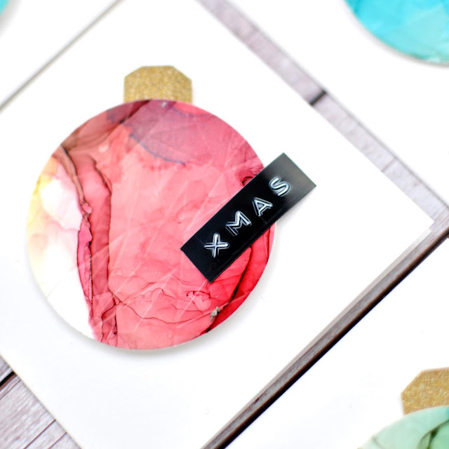 Love these cards! Great idea to do the alcohol inks with the christmas baubles!