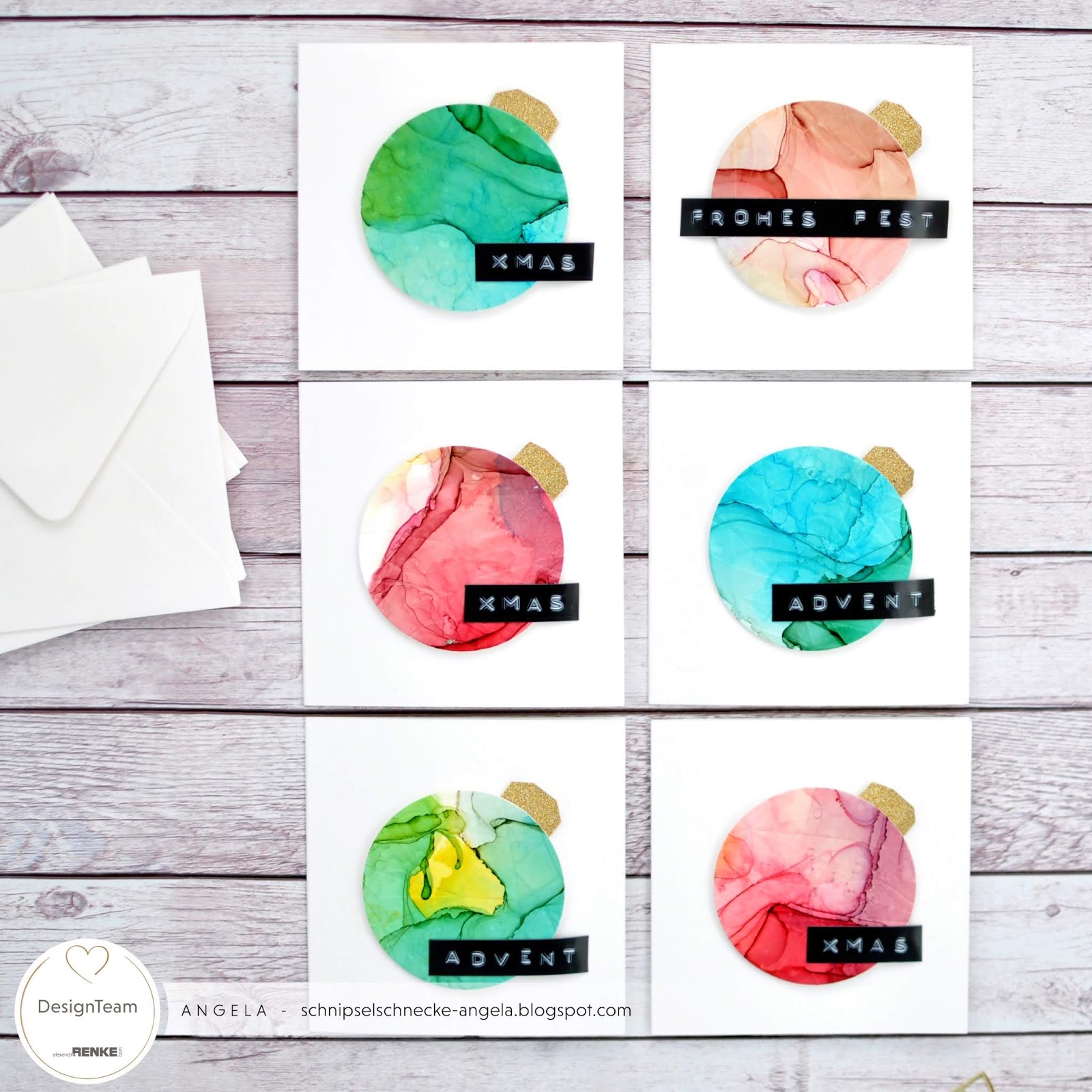 Love these cards! Great idea to do the alcohol inks with the christmas baubles!