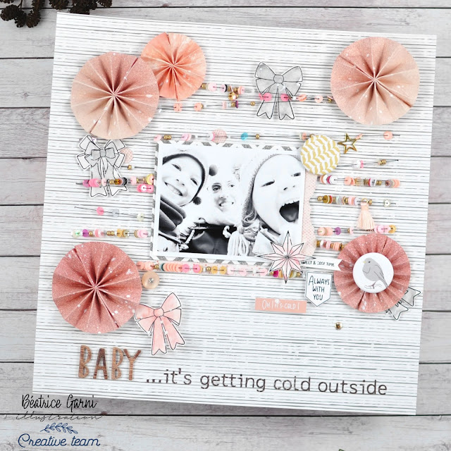 Ja man kann es nun nicht mehr leugnen das man sich warm anziehen muss!! Mit der neuen Kollektion „ma belle étoile“ von Béatrice ist ein neues Layout entstanden. Ein bißchen gefaltet und ein bißchen gefädelt und FERTIG!! Was meint ihr? Da kriegt man doch gleich wieder warme Füße. 😉