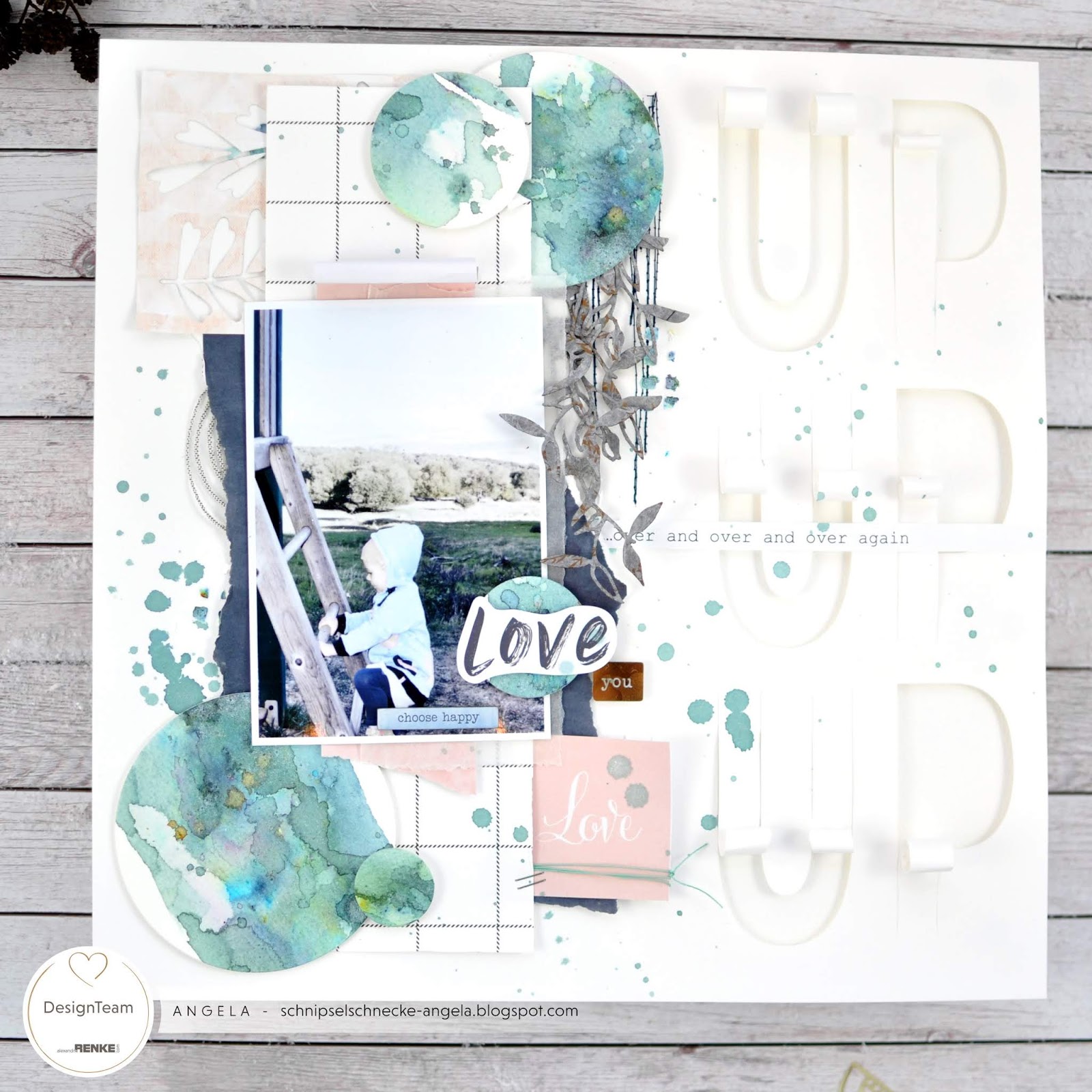 Die Idee zu dem Layout kam durch das Foto. Dieses unermüdliche Rauf und Runter auf der Rutsche….. Kind müsste man nochmal sein. 🙂