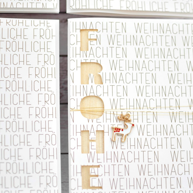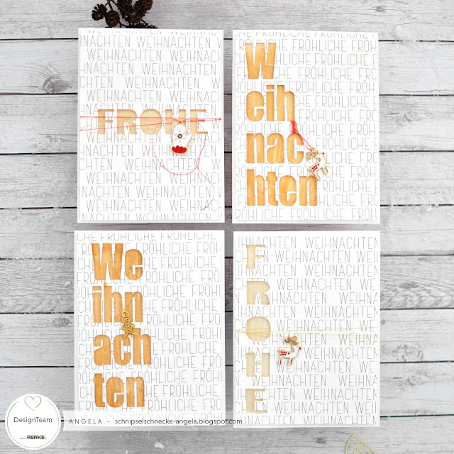 Ich muss gestehen das ich meine Weihnachtskarten Produktion durch so manche Aufträge in letzter Zeit stark vernachlässigt habe. Da sind mir einfache und schnelle Ideen ganz recht. So wie diese hier, mit der Silhouette alles vorgeschnitten und den Hintergrund mit Gold-Aquarell-Farbe koloriert, einen süßen Anhänger als Hingucker noch dran und fertig!!!!