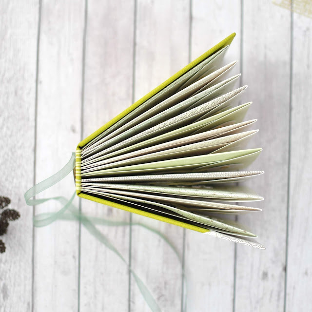 How to: Das Buch ist komplett aus grünem Buch-Leinen gebunden und enthält 12 kleine Kuverts für jeden Monat eines. Darin sind Karten die man beschriften kann. Jedes Kuvert trägt den Namen des Monats in Strukturpaste. Die Schablone dafür habe ich mit mit der Silhouette geplottet. Als Hintergrund für den Monat habe ich einfach etwas Gold AquarellFarbe aufgetupft.