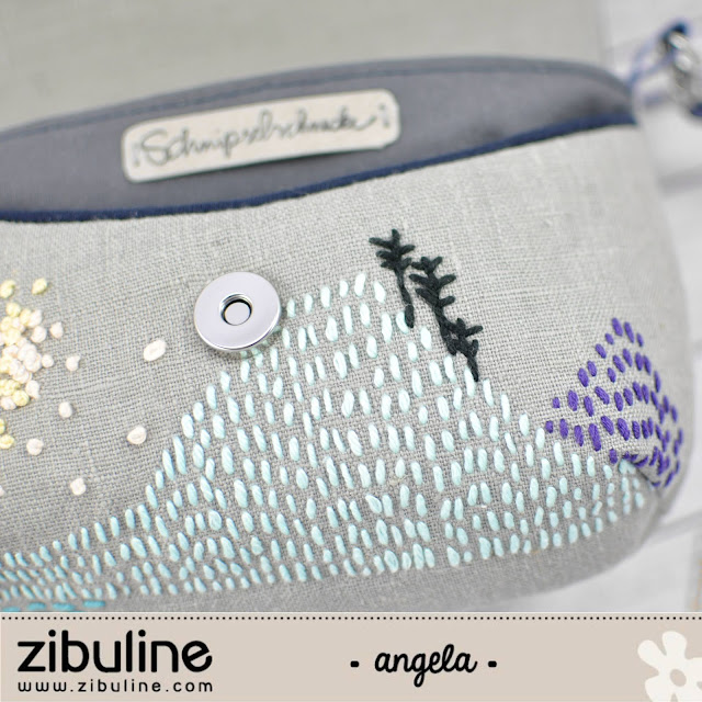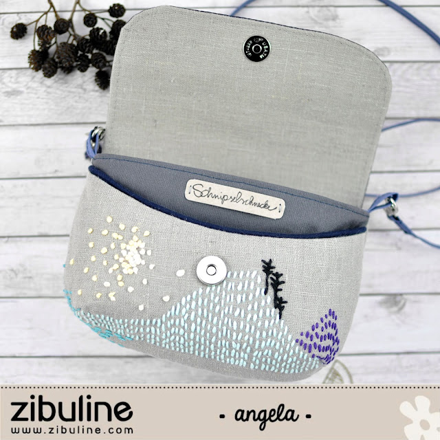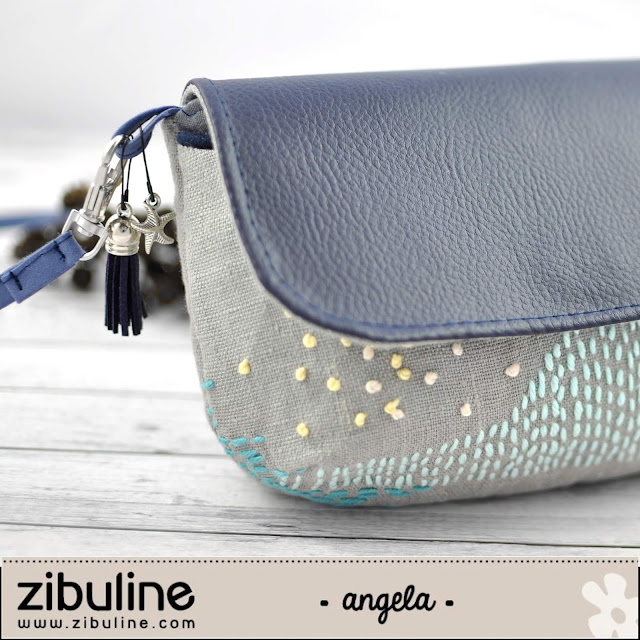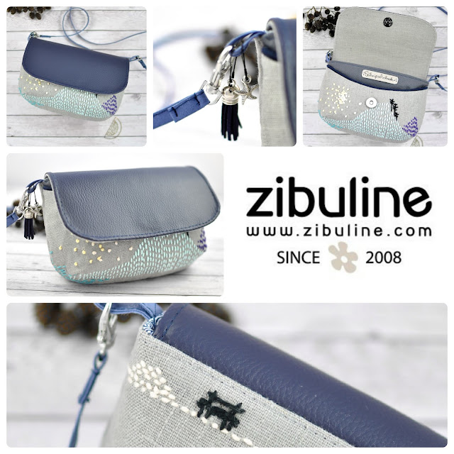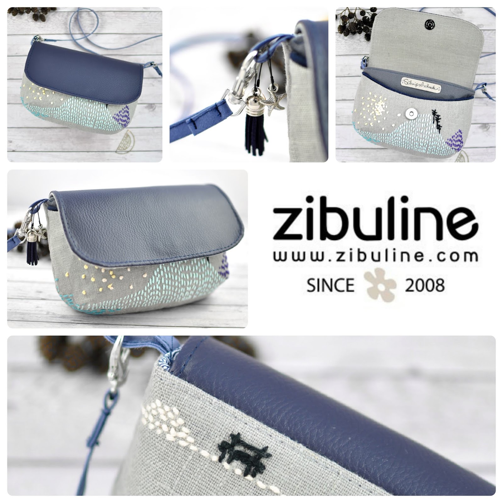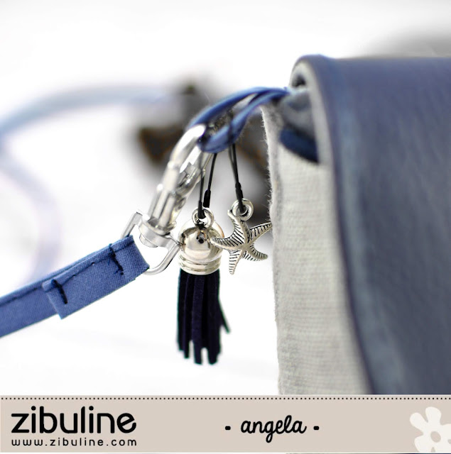 Le modèle de découpe „Eleni“ est de Unikati et il est fait assez rapidement. J’ai le superbe similicuir bleu de Zibuline et il est très facile à travailler avec. Les petits breloques sont aussi de Zibuline.