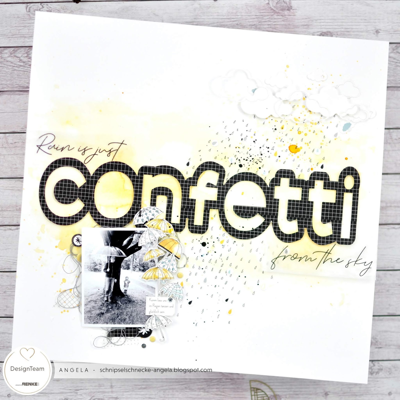 Heute gibts „Confetti“, oder so ähnlich. Ich hab den Spruch gelesen und die Idee zu dem Laoyut war geboren. So einfach kann’s gehen!!:)