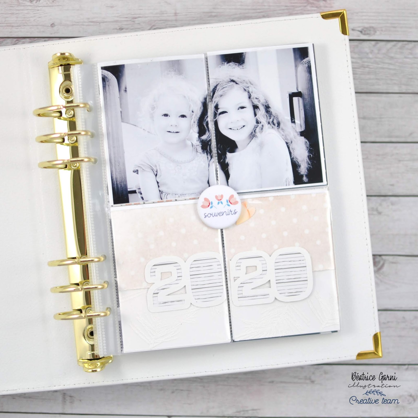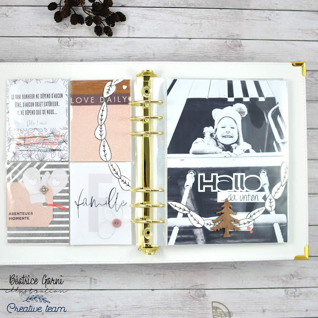 Pour cela, j’ai utilisé les cartes de „Project life“ ,le badge et les tampons de Béatrice.