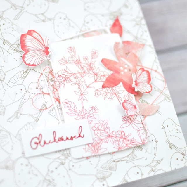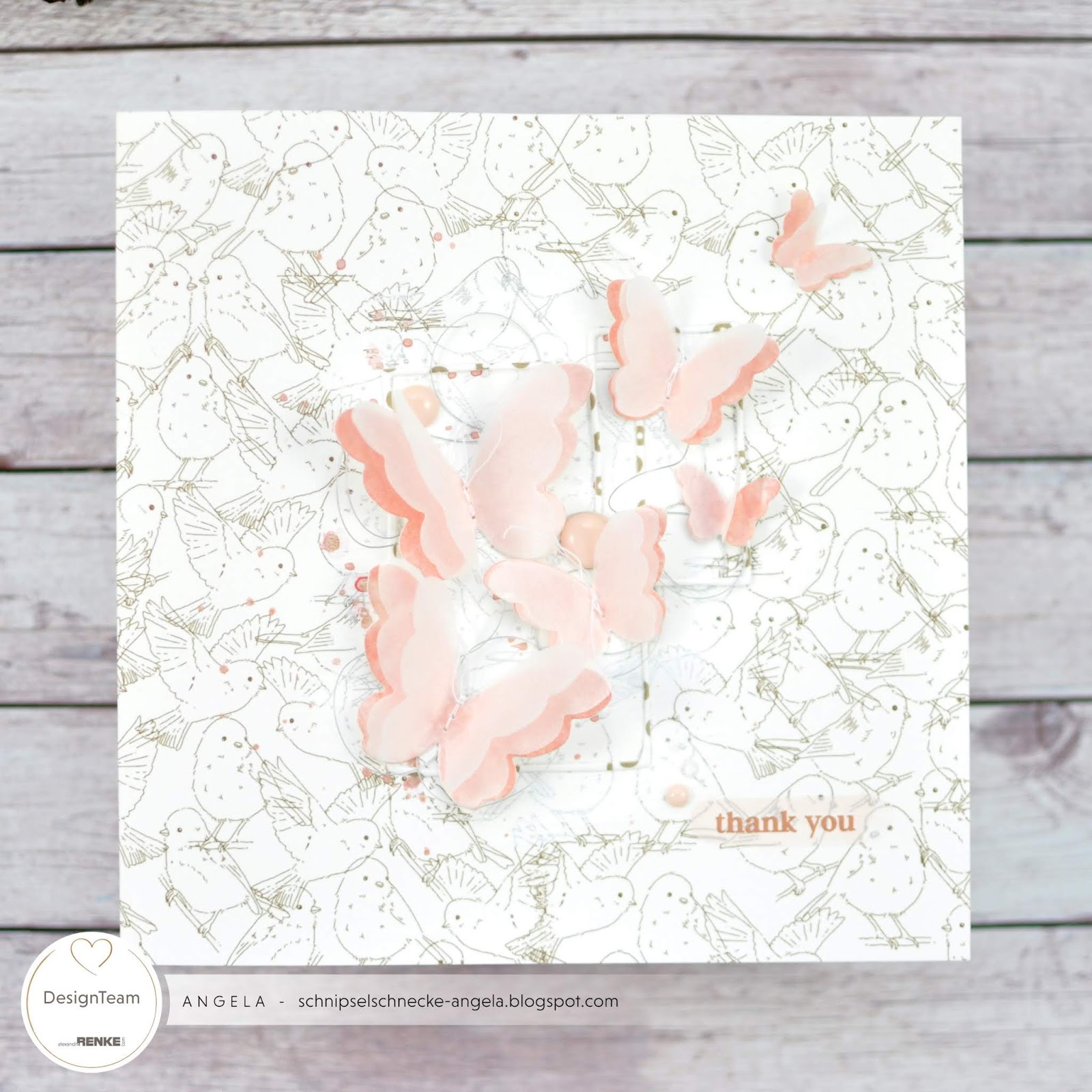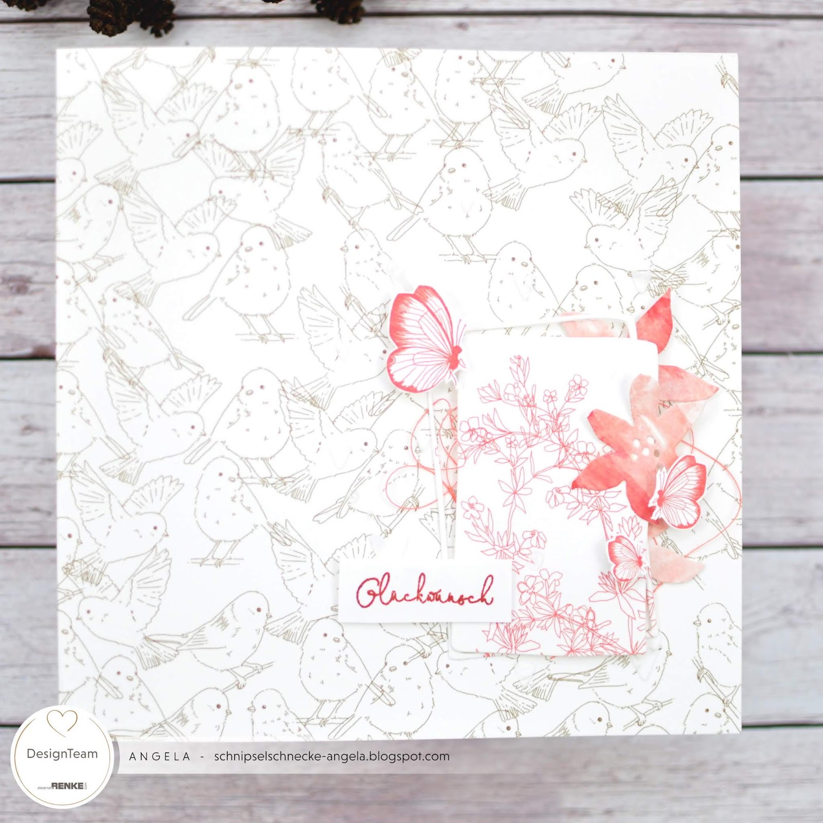 Jetzt bin ich zurück von der Creativworld mit ganz wunderbaren Eindrücken und tatsächlich auch Fotos von vielen lieben Menschen die ich dort treffen durfte. Allerdings müsst ihr wohl auf ein Layout davon noch etwas warten. Husten, Fieber und so allerlei Gemeinheiten haben uns gerade voll im Griff. Daher gibt’s heute ein kleines Kärtchenduo mit dem bezaubernden Vogelpapier von der lieben Alexandra. Kombiniert mit ein paar Schmetterlingen hat das was schön flatteriges!!