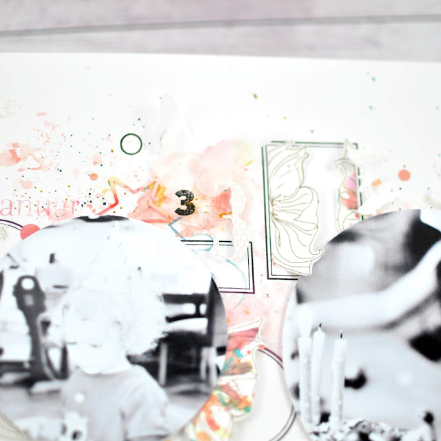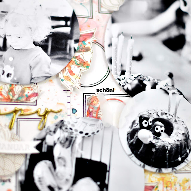 Wer sagt das man die schönen „Frames“ Stempel und Washis von Alexandra Renke nicht auch mal für ein Layout hernehmen kann. Mit den „Frames“ habe ich mit Masking Technik den Hintergrund gestaltet. Wie das geht erkläre ich weiter unten. Die Blumen auf dem tollen Washi habe ich ausgeschnitten, noch mit etwas Aquarell gekleckst und dann einfach munter weitergemacht. Was meint ihr?