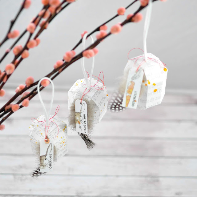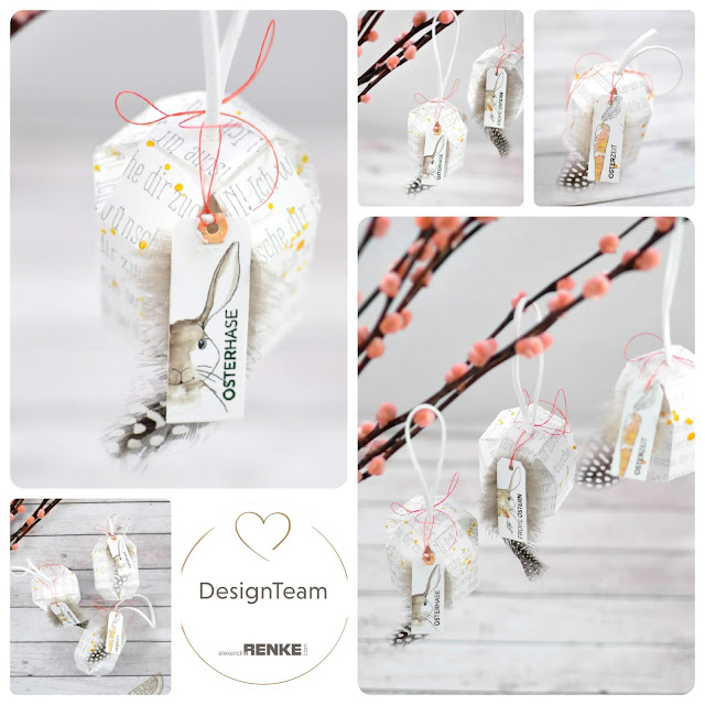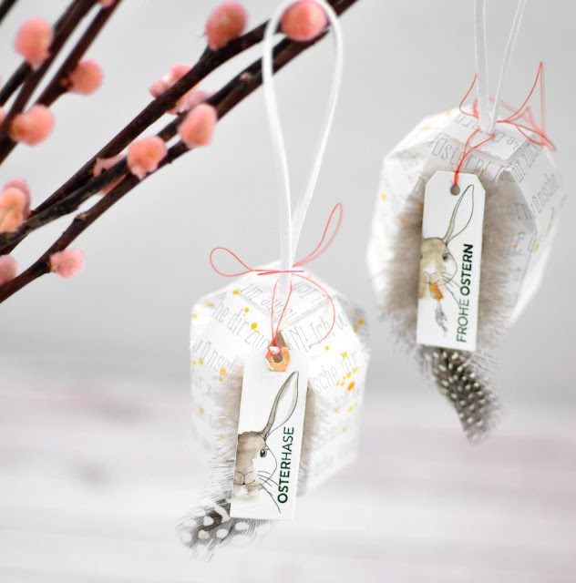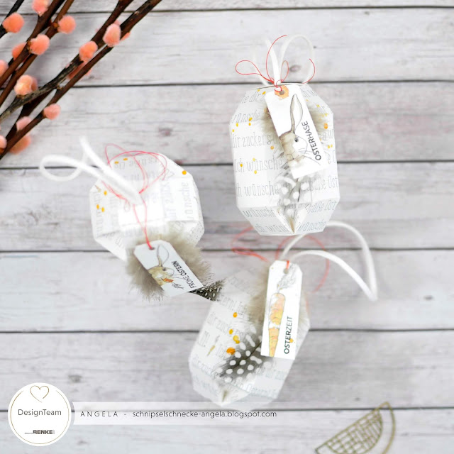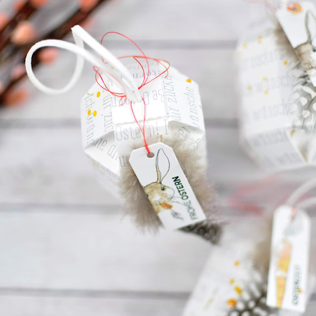 Für die Eierchen habe ich sogar die tollen Hasenpapiere angeschnitten, ist mir nicht leicht gefallen.:) Aber der zarte Text „wünsche dir zuckersüße Ostern“ passte so schön zu einem Schokoinhalt. Die kleinen Hasen-Tags sind aus diesem Papier ausgestanzt und die Oster Clear-Stamps findet ihr hier.