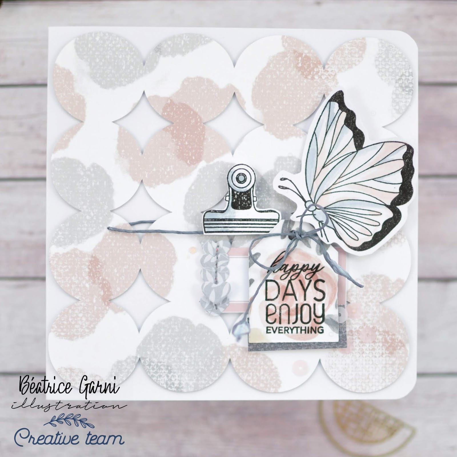C’est déjà le printemps?? La nouvelle collection de Béa „Comme un air de printemps“ est pleine de charme printanier avec tous les papillons et les fleurs. Tout simplement magnifique ! Cette petite carte rapide a sauté de ma table de bricolage dès que j’ai déballé mon paquet. Vous pouvez être curieux de ce que je vais en faire d’autre.