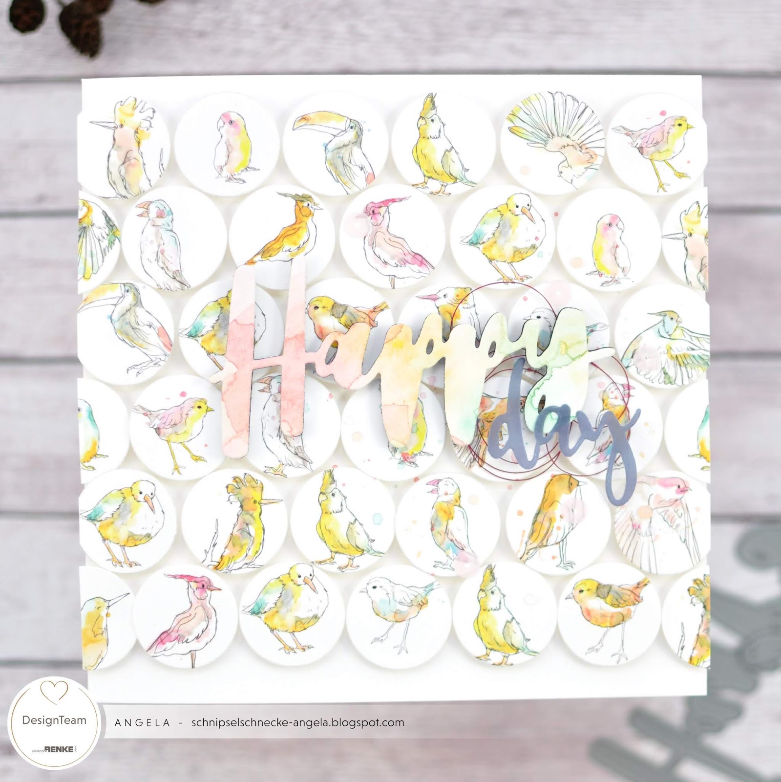 Die Sonne lacht, es ist Wochenende…ich schick euch ein paar schöne Farben, verkleidet in Alexandra’s süßer Vogelbande. Lasst es euch gut gehen und bleibt gesund!! Direkte Links zu den Sachen: „Happy“ Stanze Vogelpapier Transparentpapier in blau „my day“ Stanze Nymogarn violet Happy Day Markiert in: Alexandra Renke creative at home Renke Vögel