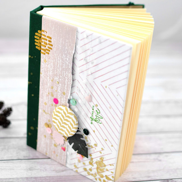 Ich liebe diese Farbkombi, Waldgrün, Rosa, Gold…….Ein kleines Notizbüchlein ist entstanden mit Papieren aus der Kollektion „Comme un air de printemps“ von Béatrice.