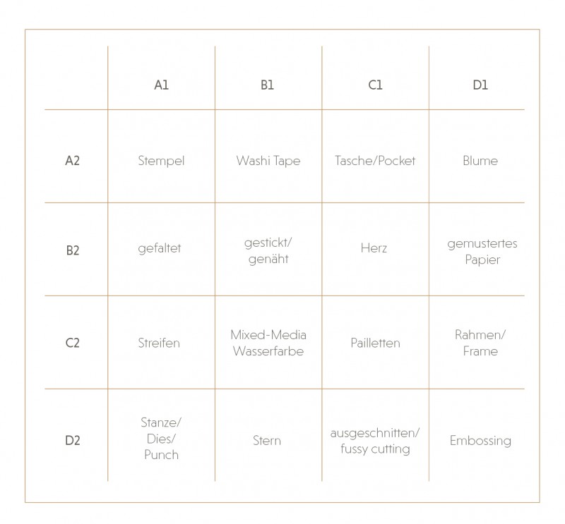 Letzter Tag Scrap Bingo des Bettertogether Teams von Alexandra Renke. Und wir spielen A2. (Bild weiter unten)
