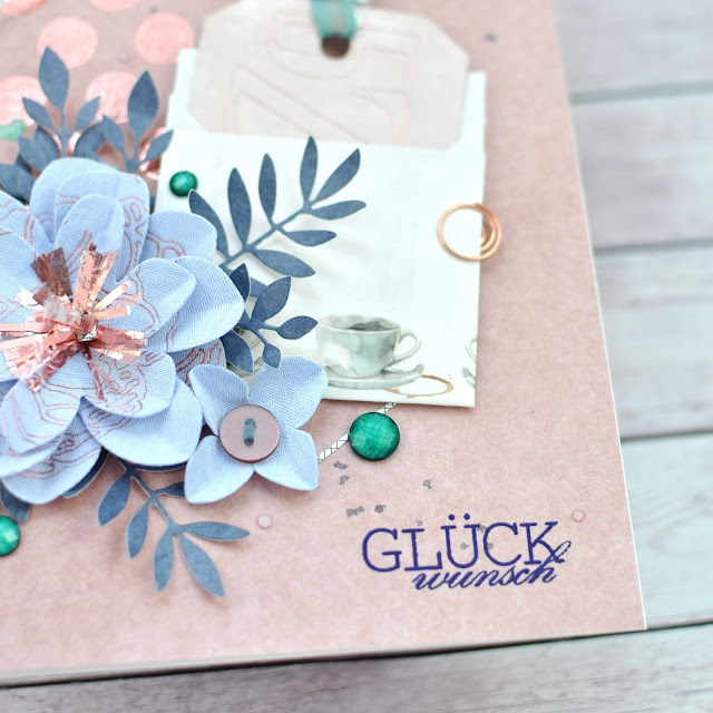 Das Glimmer Hot Foil System von Spellbinders steht gerade auf meinem Basteltisch und ich probiere damit herum. So ist auch diese Karte, eine Auftragsarbeit für einen 50zigsten Geburtstag entstanden.