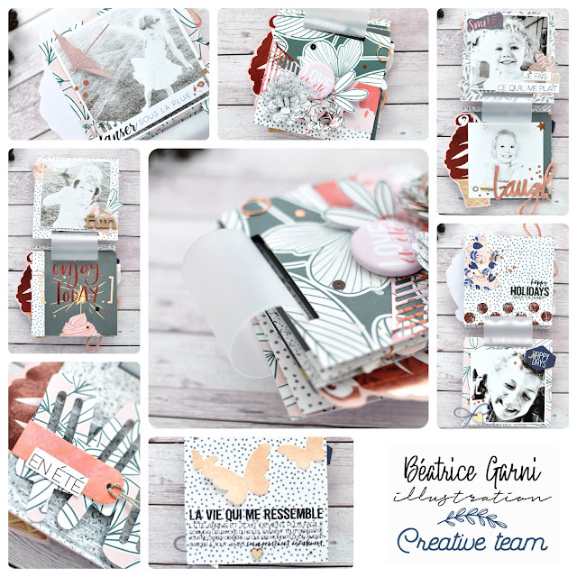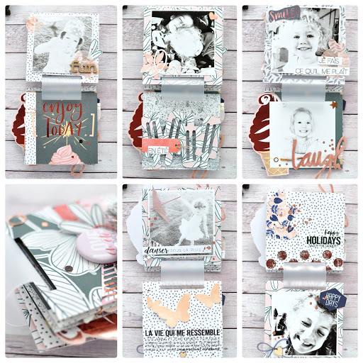 Une mini album rapide a été créée, car la reliure est assez simple et très rapide à réaliser. Un rouleau de plastique plus épais maintient les pages ensemble et vous pouvez tourner les pages à merveille.