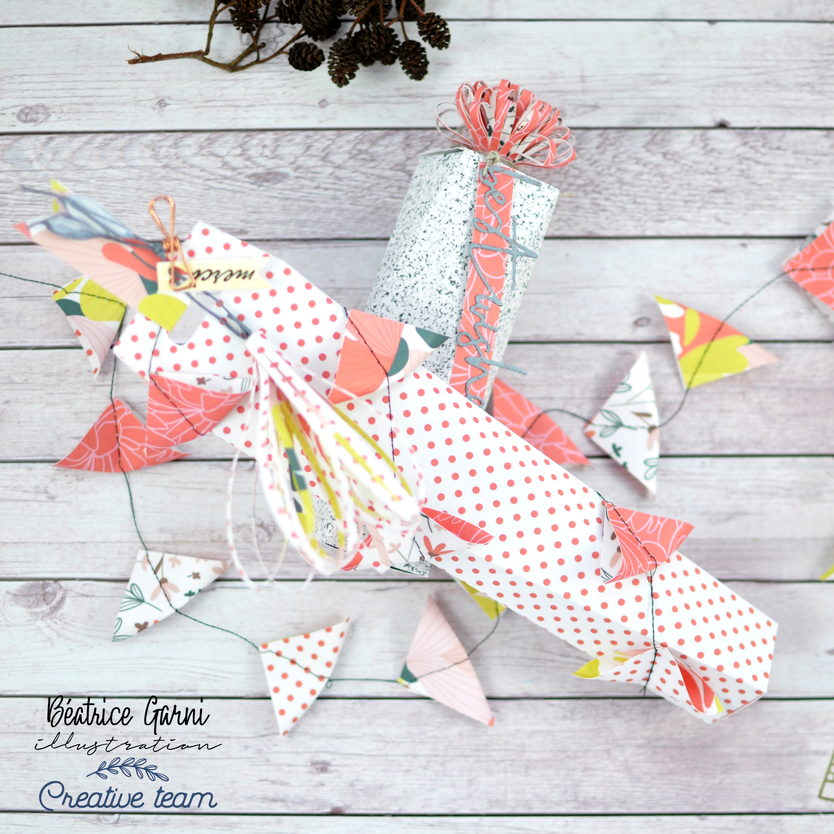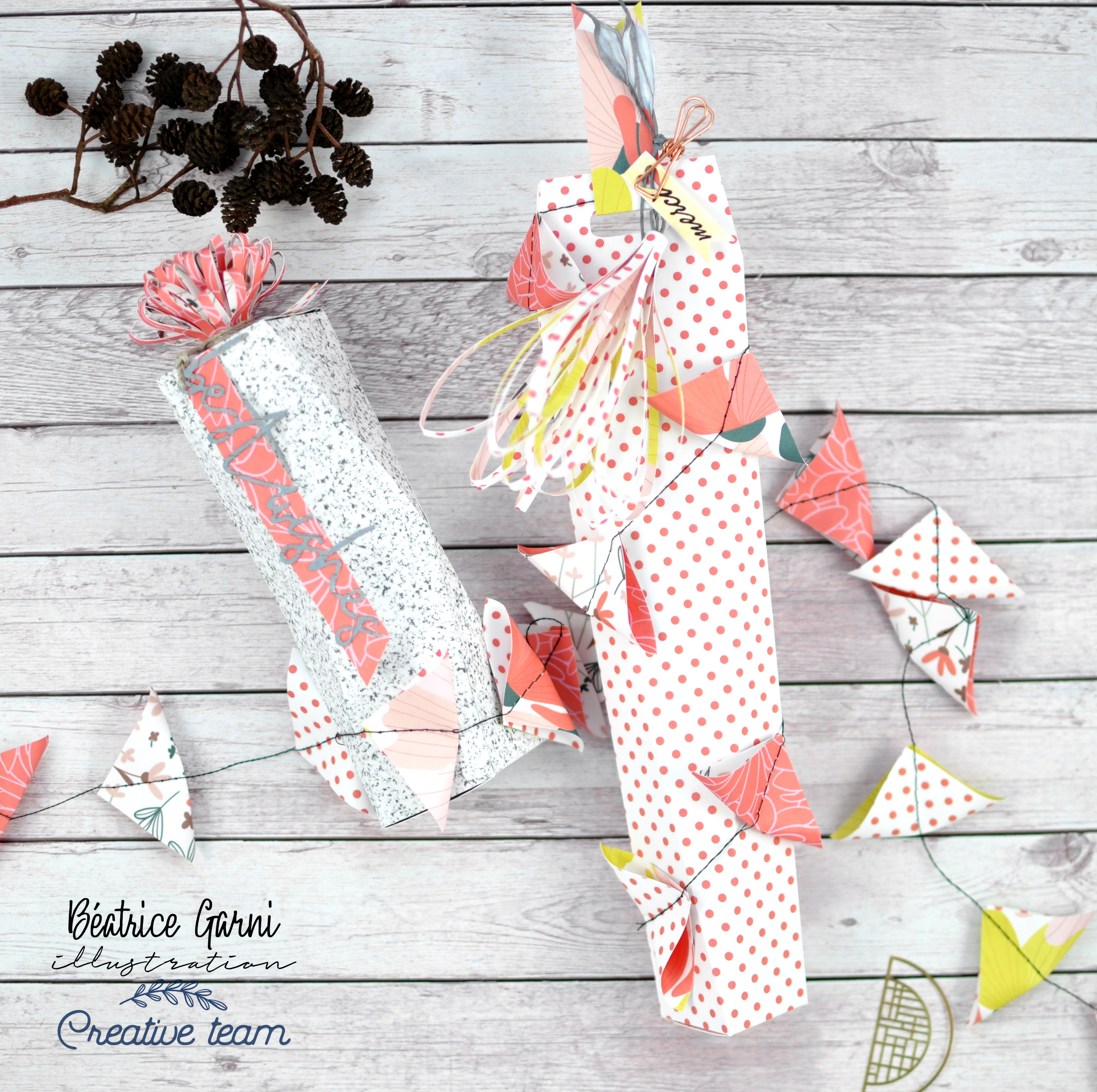 Pour les boîtes, j’ai utilisé du papier de la collection „Beautiful summer“ de Béa. J’étais vraiment très économe avec le beau papier, alors il m’en restait assez. Savez-vous que si vous avez un si beau papier, alors vous ne coupez qu’un tout petit morceau de papier… n’en utilisez pas trop. C’est juste trop beau! 🙂