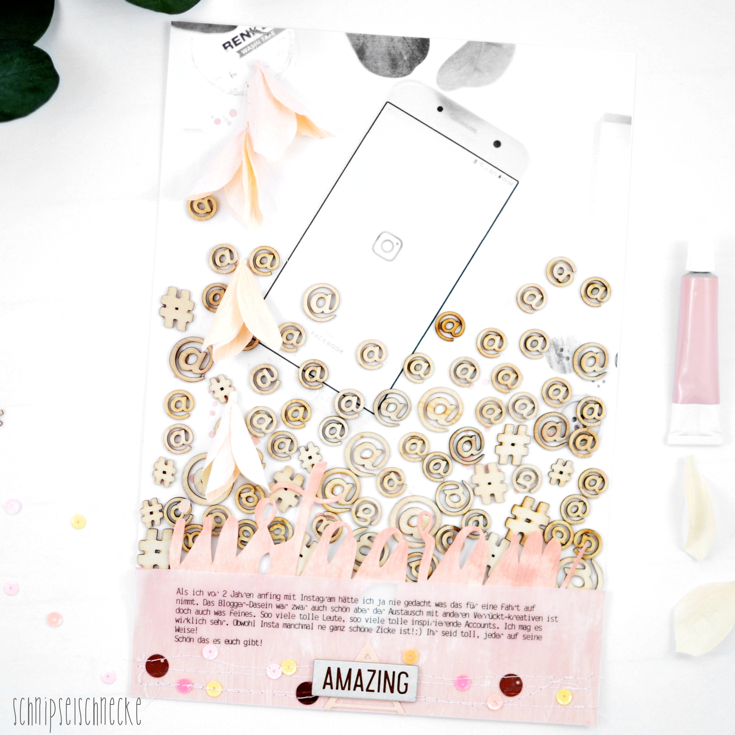 Hier ein kleines Dankeschön an alle die Kreativen im Insta-Netz. Die Idee dazu hatte ich als mir eine ganze Handvoll Hashtags und @s in die Hände gefallen sind. Die schrien nach einem social media Layout…..und ich habe jetzt in meiner Sammelkiste ein kleines Mini Fach wieder frei.