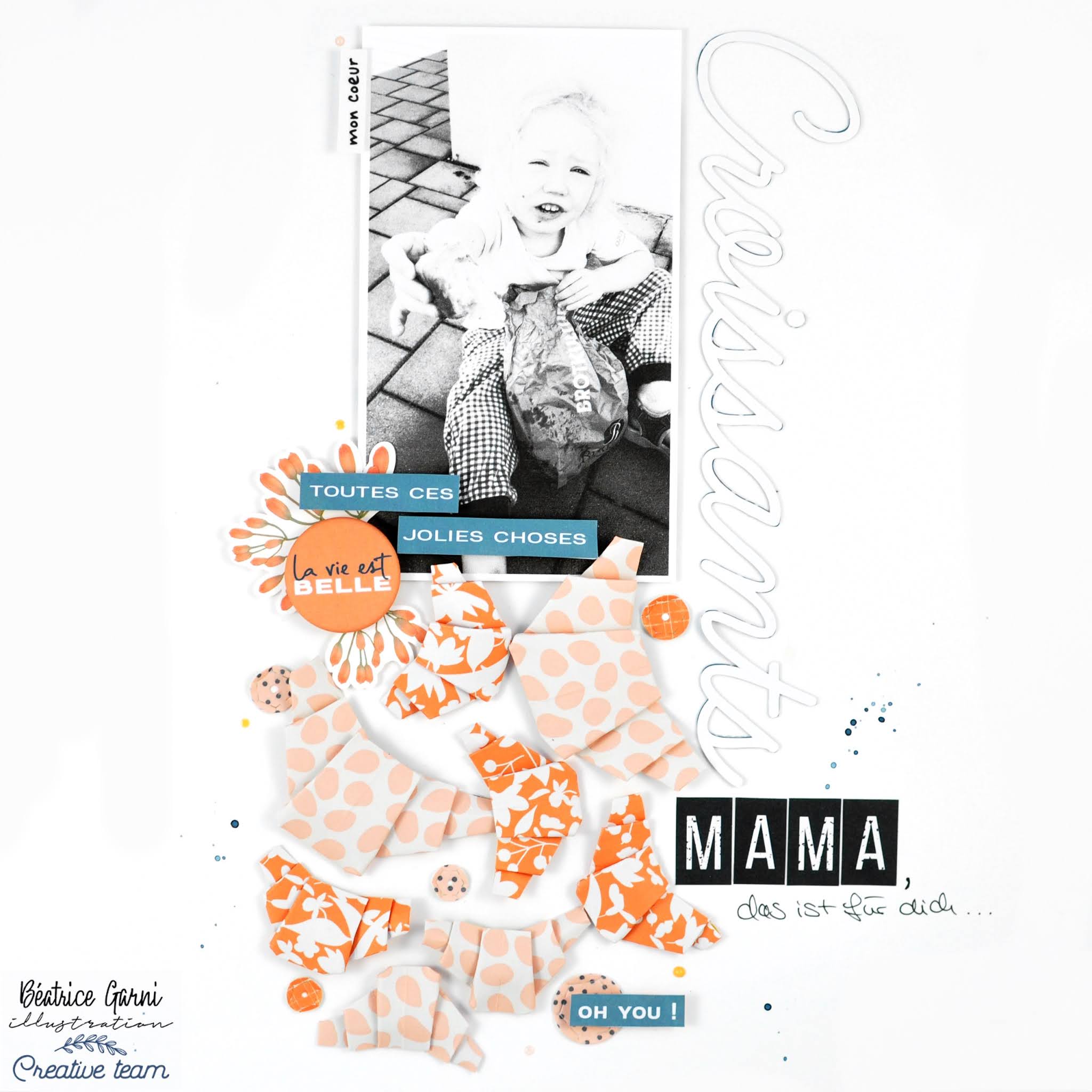 Pour cela, j’ai utilisé les merveilleux papiers de la collection „La vie est belle“ de Béatrice.