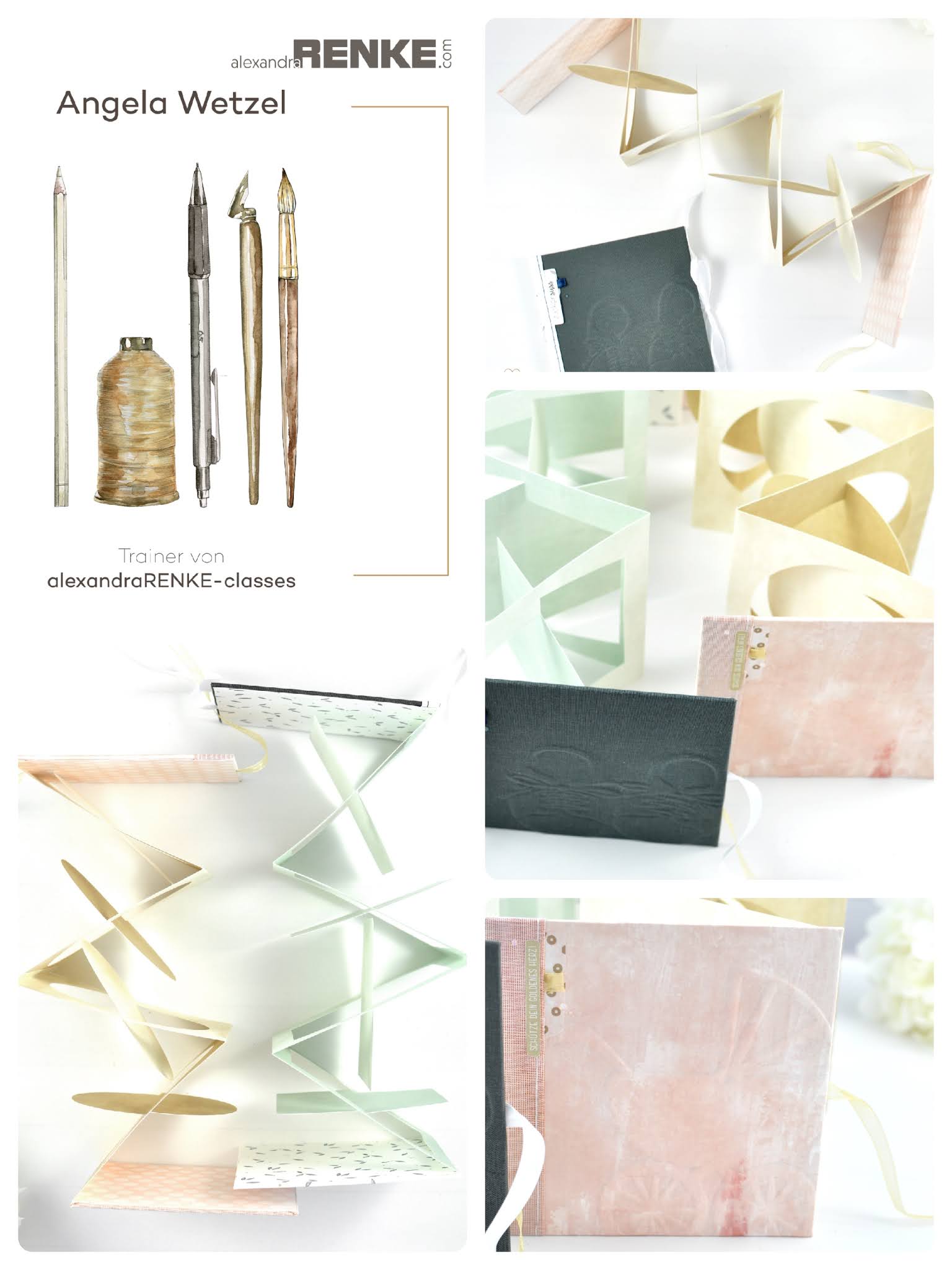 De moi, il y a aujourd’hui un pliage intéressant avec une certaine technique. Vous pouvez trouver tout cela chez Alexandra Renke Classes. Je vous montre comment fonctionne le embossage avec du papier à dessin et du toile de livre et vous pouvez faire les leporellos avec moi. Je suis toujours disponible pour ce genre de choses. Et vous ?