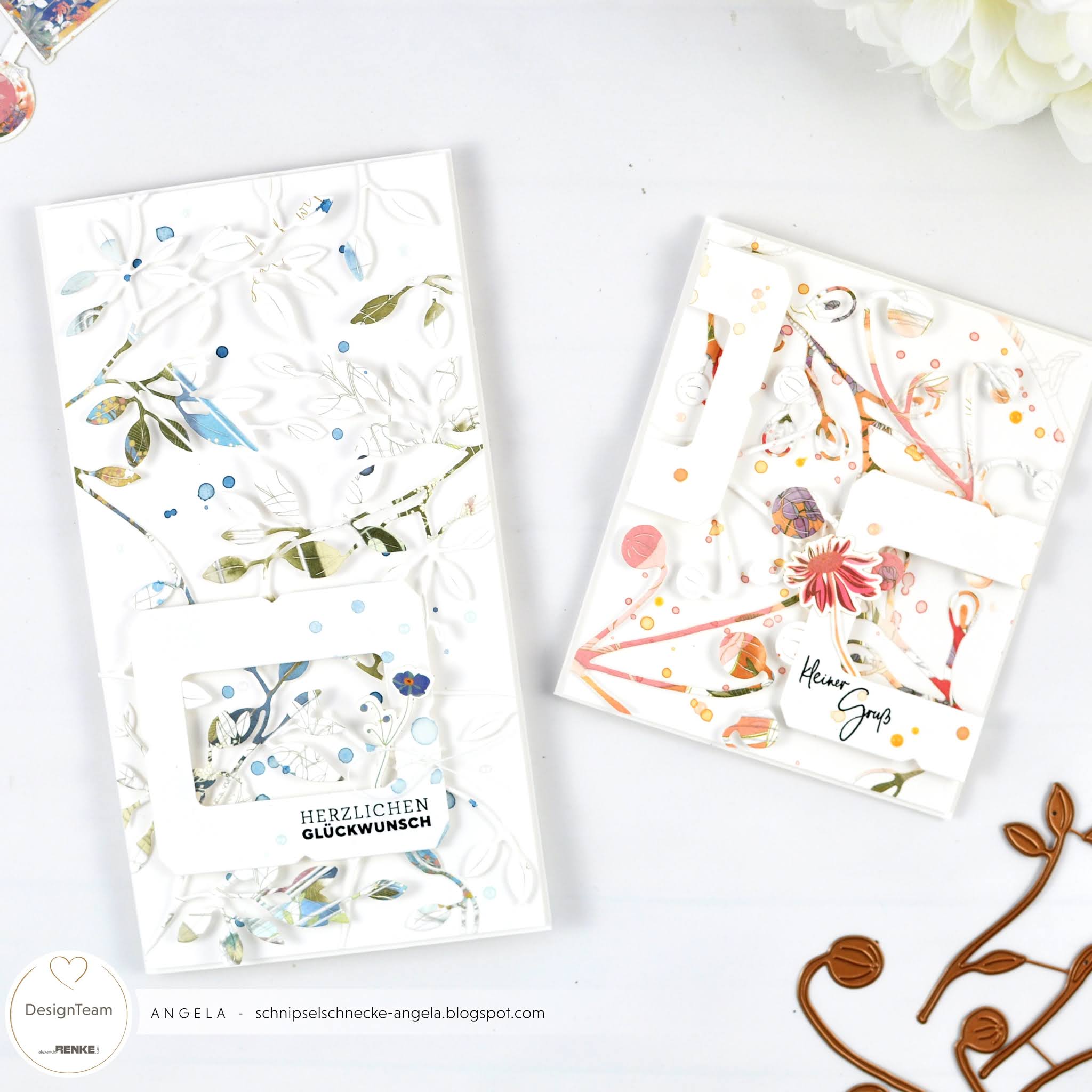 Blätterkärtchen gehen einfach immer. Die neuen Blätterstanzen von Alexandra sind ja genau Meins. Passen zu allem und sind meegaschön. Da werdet ihr noch einiges zu sehen bekommen von mir. 😉