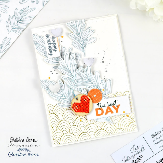 Une petite carte de félicitations a été créée avec la belle collection de Béatrice Garni. Elle a également réalisé une nouvelle série de tampons avec des félicitations.