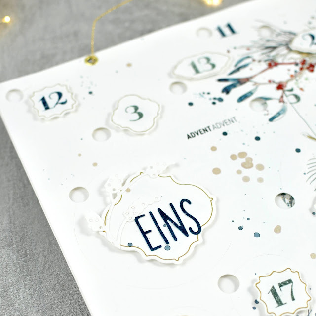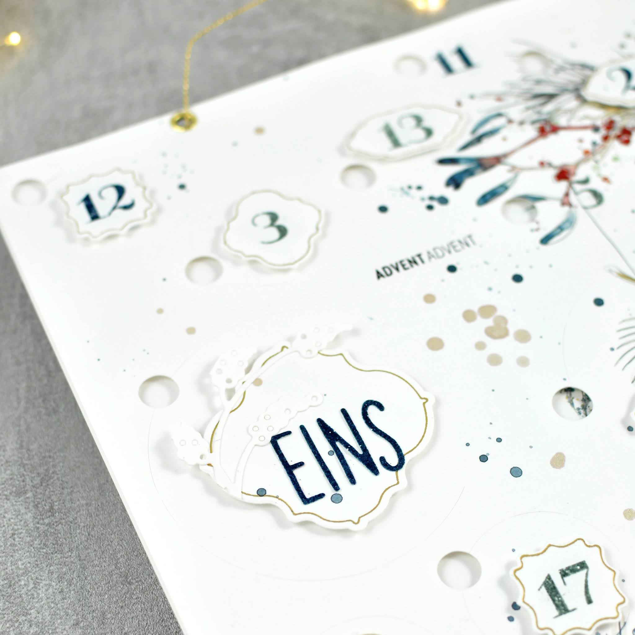Et Voilà, tataaaa hier ist er…verziert mit 24 Türchen, teils mit Glamour Plate Etiketten, alle embossed und auch manchmal schön versteckt, dass man suchen muss, hehe. 😉