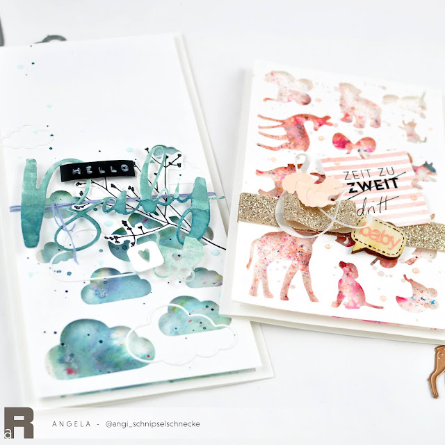 Ich mache mit euch tolle Hintergründe ganz easy mit den Magicals und gestalte mit euch zwei Karten, eine für Mädels und eine für Jungs. Ein Prinzip zwei unterschiedliche Karten.