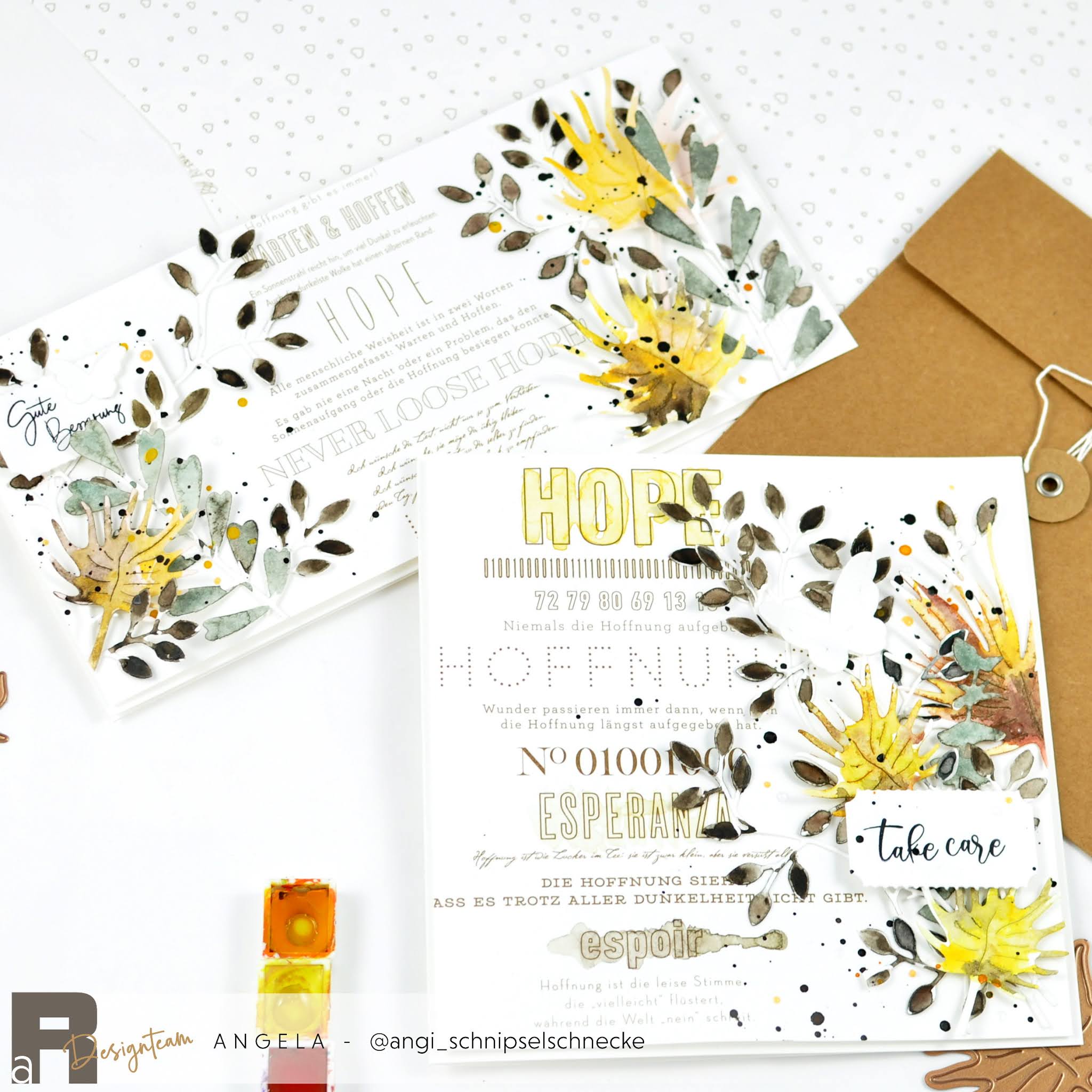 Das sind zwei besonders schöne Genesungskarten und ganz toll finde ich die aquarellierten Blätter!