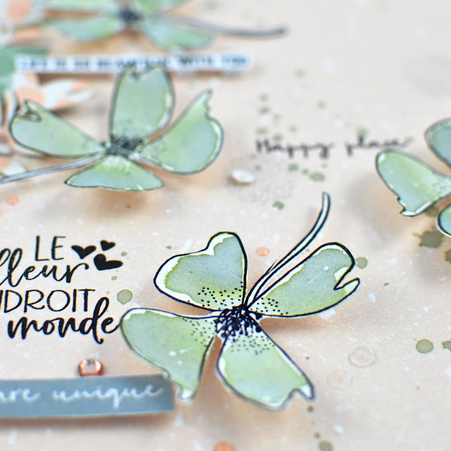 Un beau tampon, qui rappelle un trèfle porte-bonheur…. Jetzt guckste, wa? Ein Hoch auf den Übersetzer von Google… Hoffentlich annähernd richtig?! Hehe…