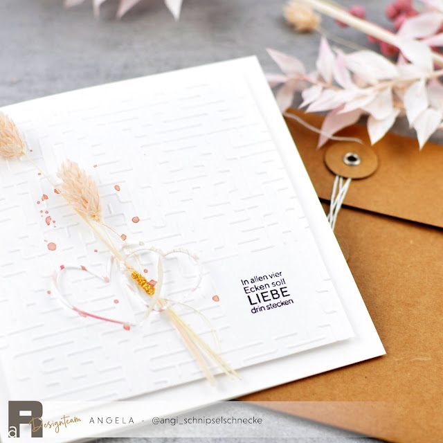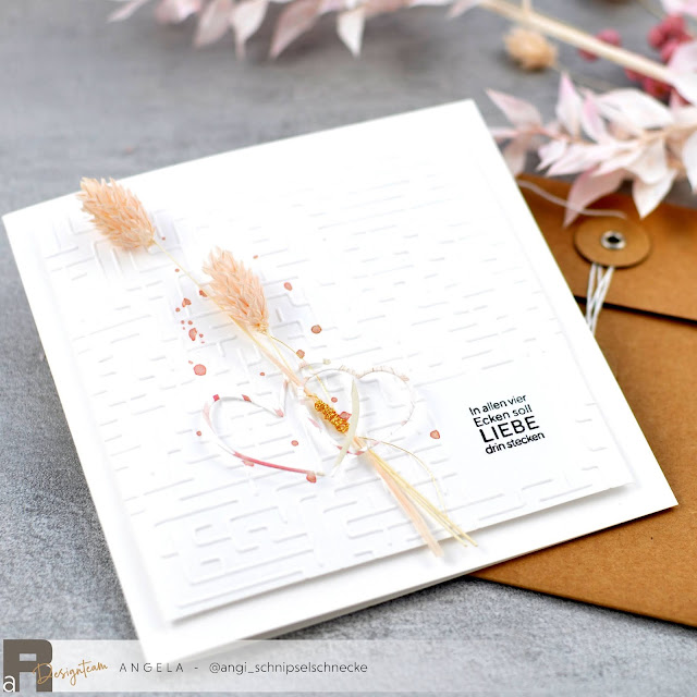 Hab ich euch ja noch gar nicht gezeigt…jetzt aber schnell. 🙂 Das ich Trockenblumen mag wisst ihr ja schon und jaaaa es mussten hier auf diese schlichte Hochzeitskarte auch unbedingt welche mit drauf.